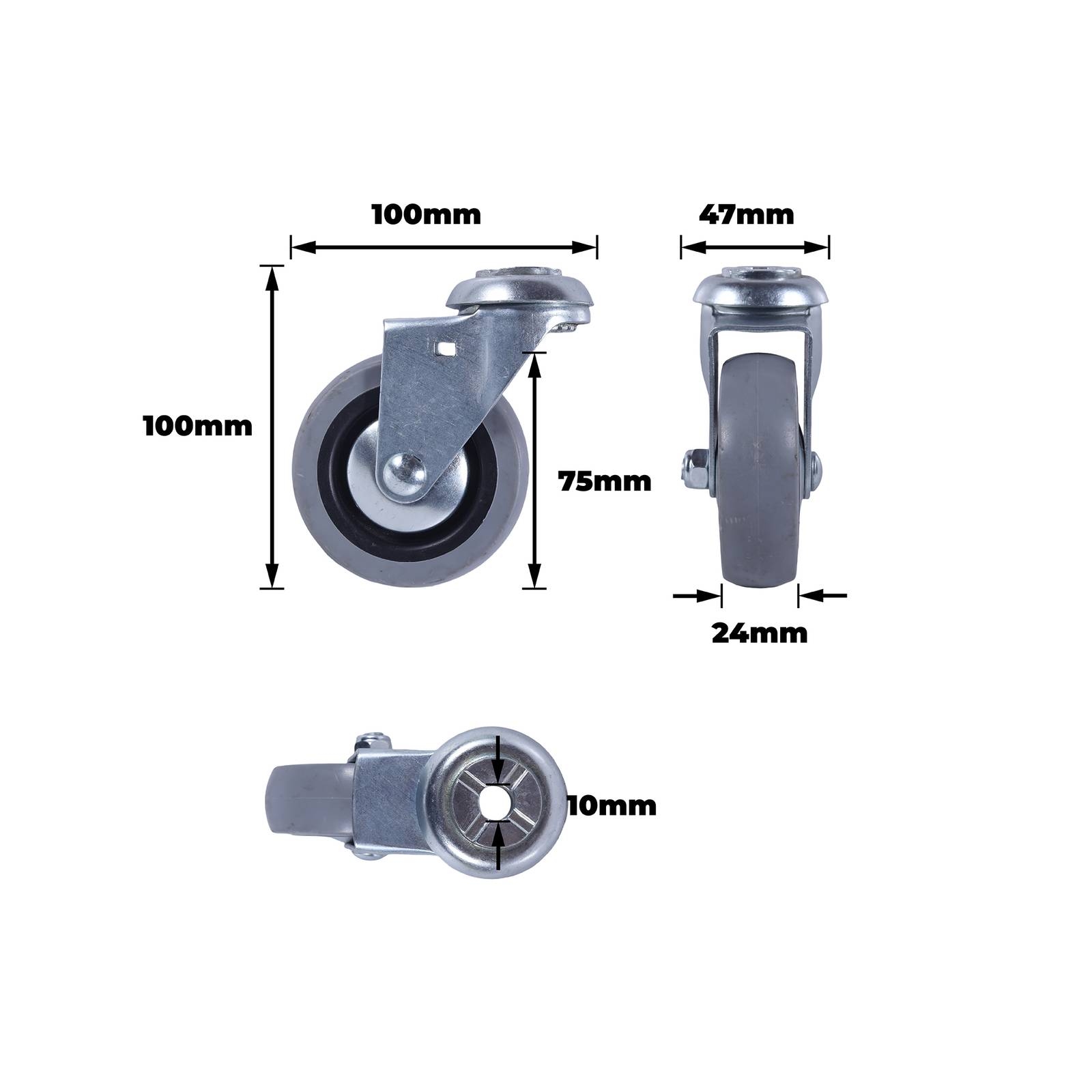 75MM GREY RUBBER BOLT HOLE CASTOR