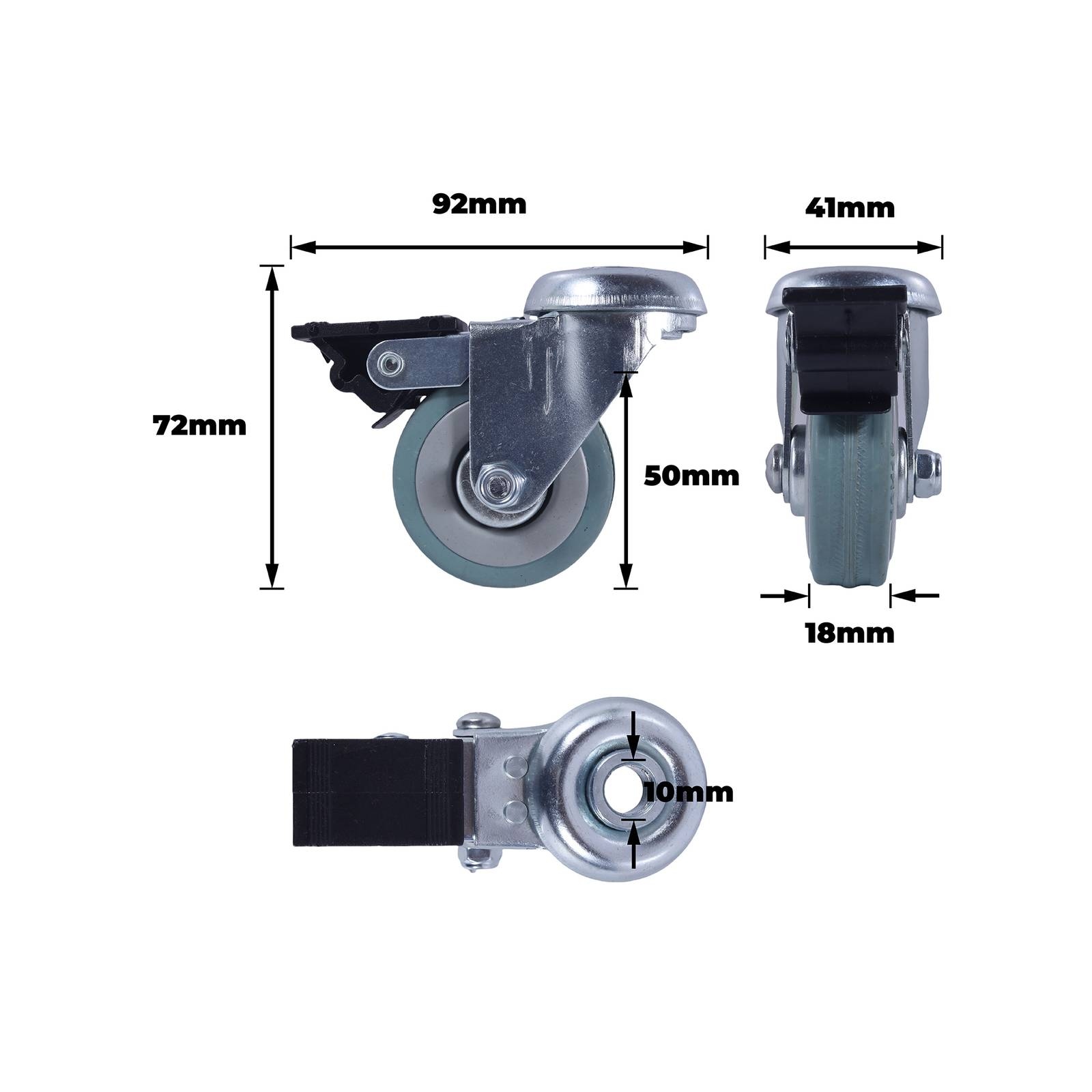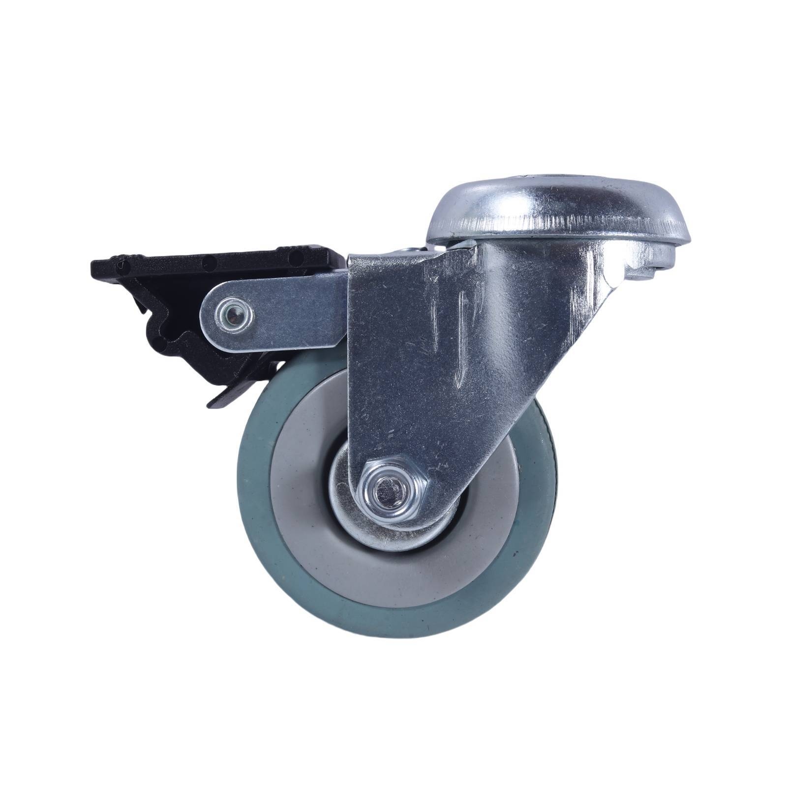 easyroll 50MM GREY RUBBER BOLT HOLE BRAKE CASTORThis robust swivel brake castor is engineered for practical DIY applications where precise control and durability are essential. Its design combines a nylon wheel core with a soft grey rubber tyre to prevent marking while ensuring quiet operation. The steel housing, plain bearings and double raceway provide dependable strength even under 40 kg loads. Ideal for retrofitting furniture, retail fixtures and industrial equipment, it delivers secure braking and smooth manoeuvring.