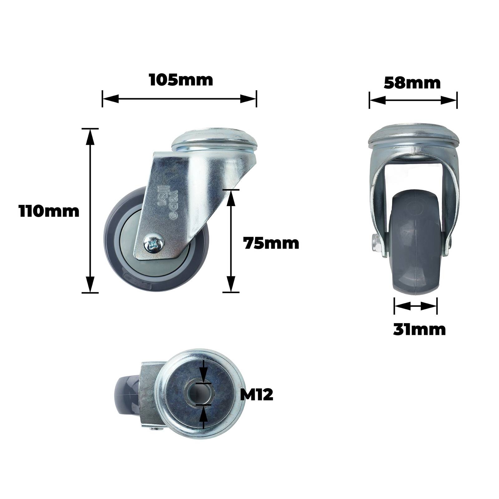 easyroll 75MM GREY URETHANE BOLT HOLE C is designed for users who demand precision and durability in their DIY projects. Featuring precision bearings housed within a robust stainless steel structure, this component provides reliable performance in varied applications. Its M12 mounting size ensures ease of installation while the urethane tyre maintains effective load management up to 90kgs. This product is an essential technical component for DIY enthusiasts who require dependable functionality and practical engineering design.Detailed