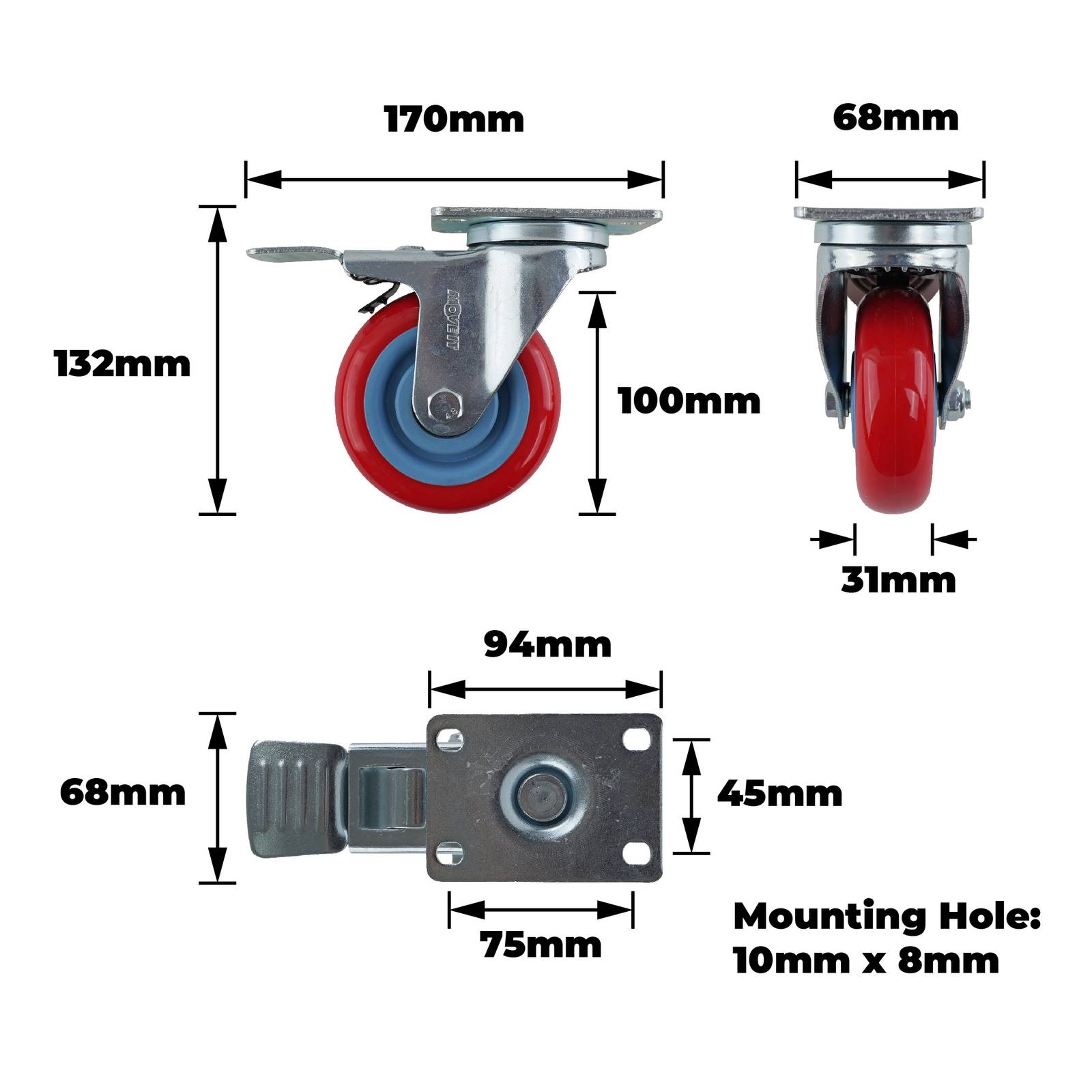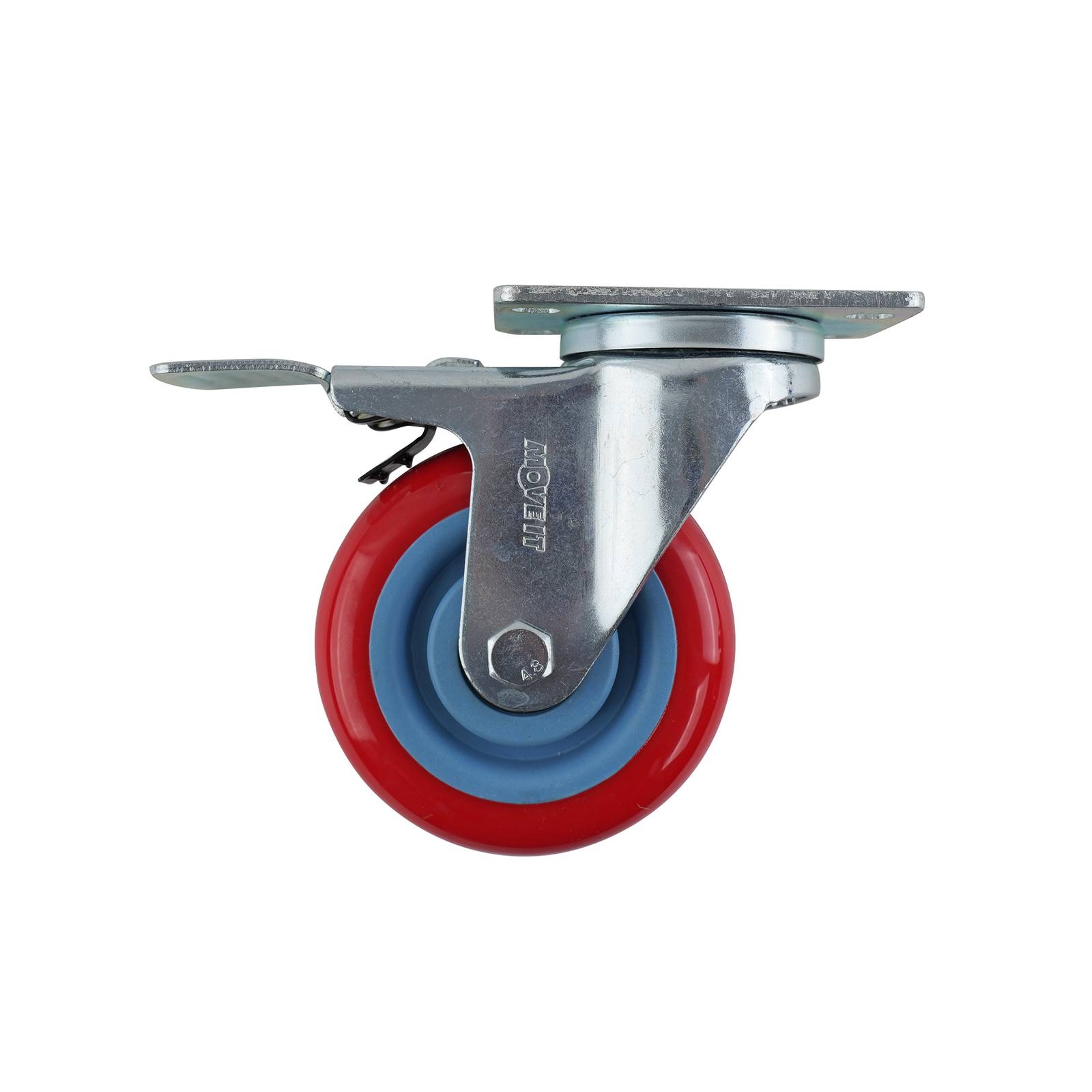 100MM RED PU SWIVEL WITH BRAKE CASTOR