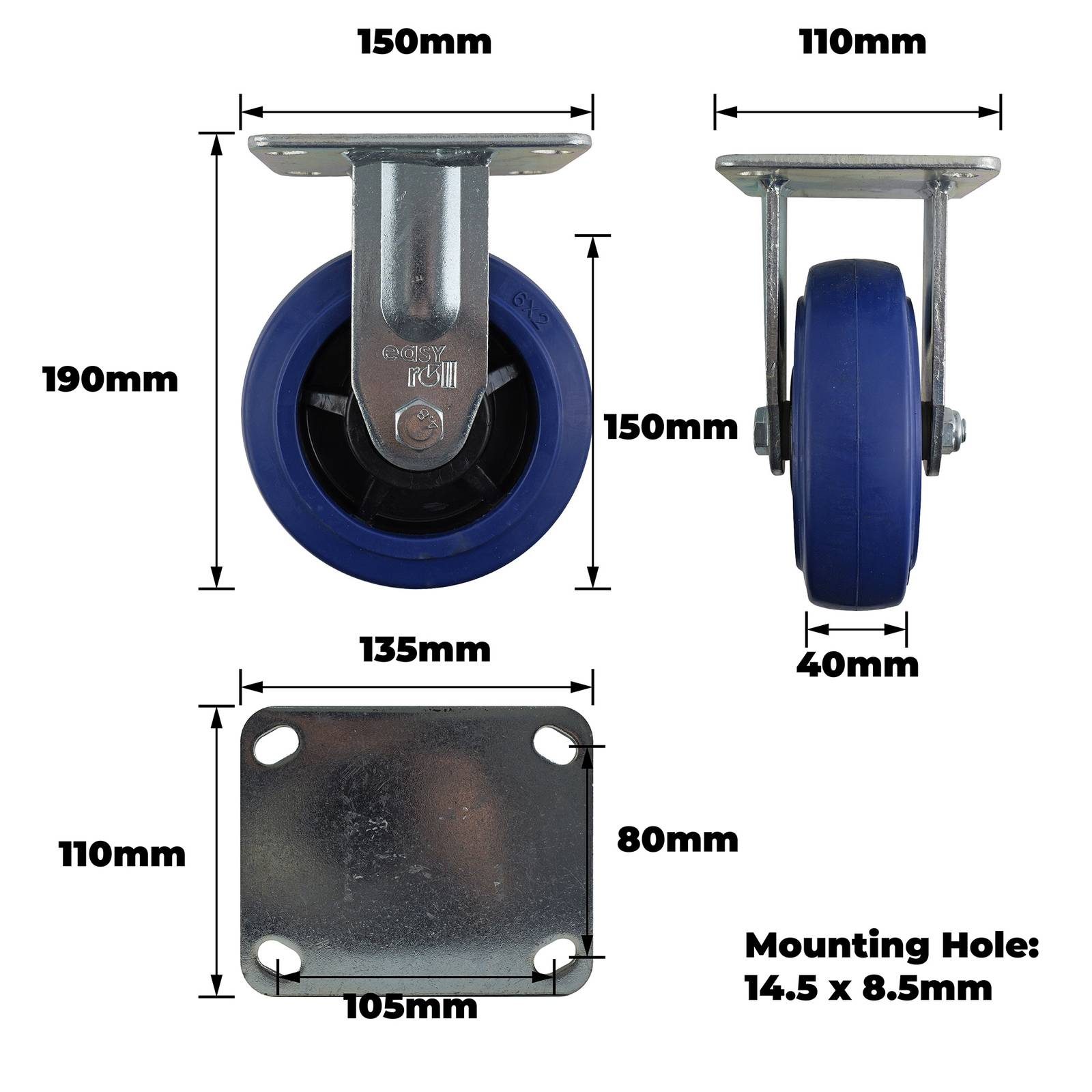 - 150mm fixed plate with PP core and rubber tyre for consistent performance