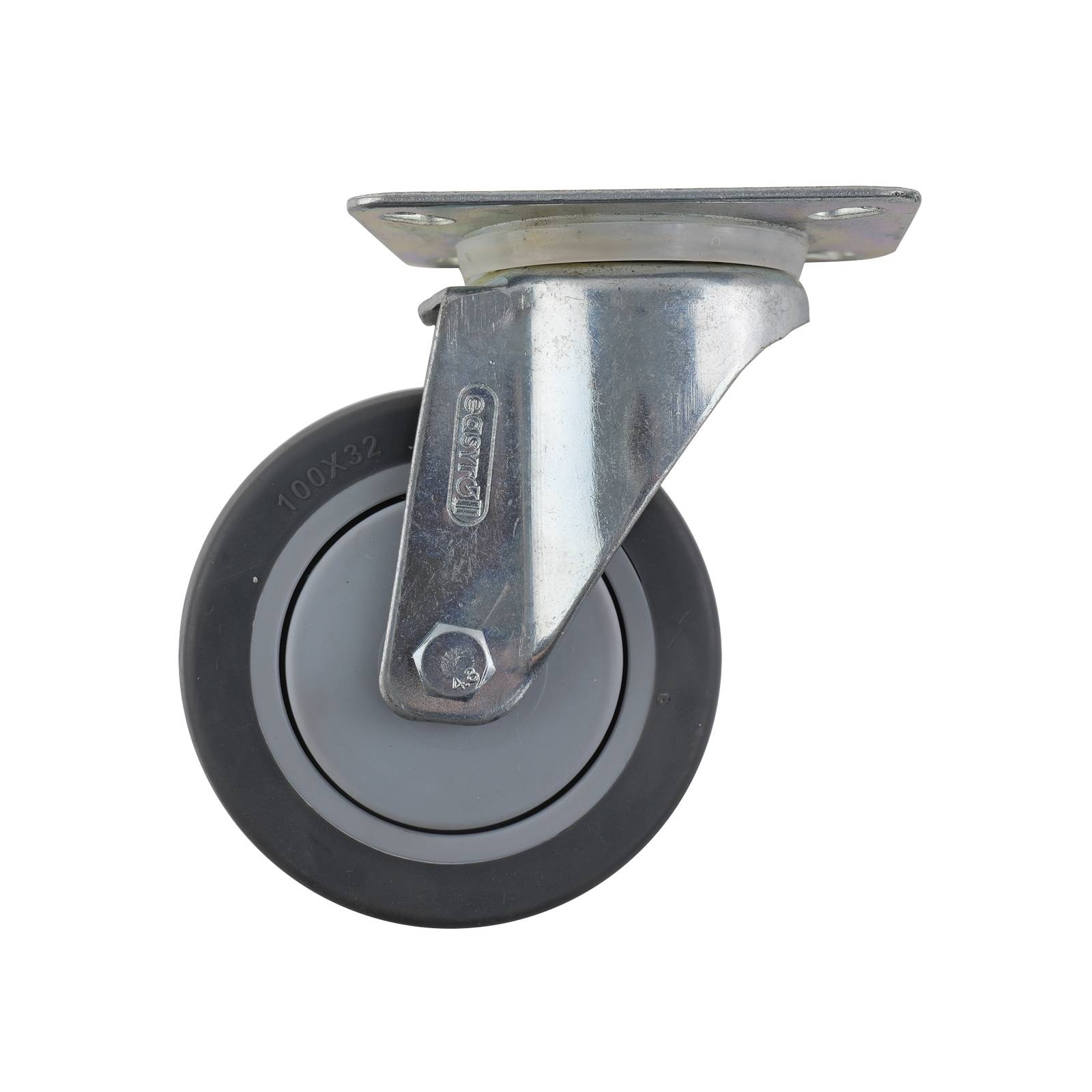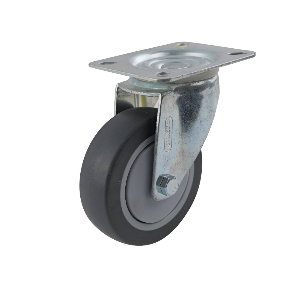 easyroll 100MM GREY RUBBER SWIVEL PLATE 100KG 15800This swivel castor is engineered for DIY projects and professional applications requiring reliable mobility. Its robust construction features a precision bearing and a steel housing, ensuring smooth rotation and durability. The single raceway design and polypropylene wheel core offer strength and manoeuvrability, making it ideal for equipment and furniture upgrades. With a 100kg load capacity and TPR tyre material, it delivers dependable performance for various practical installations.