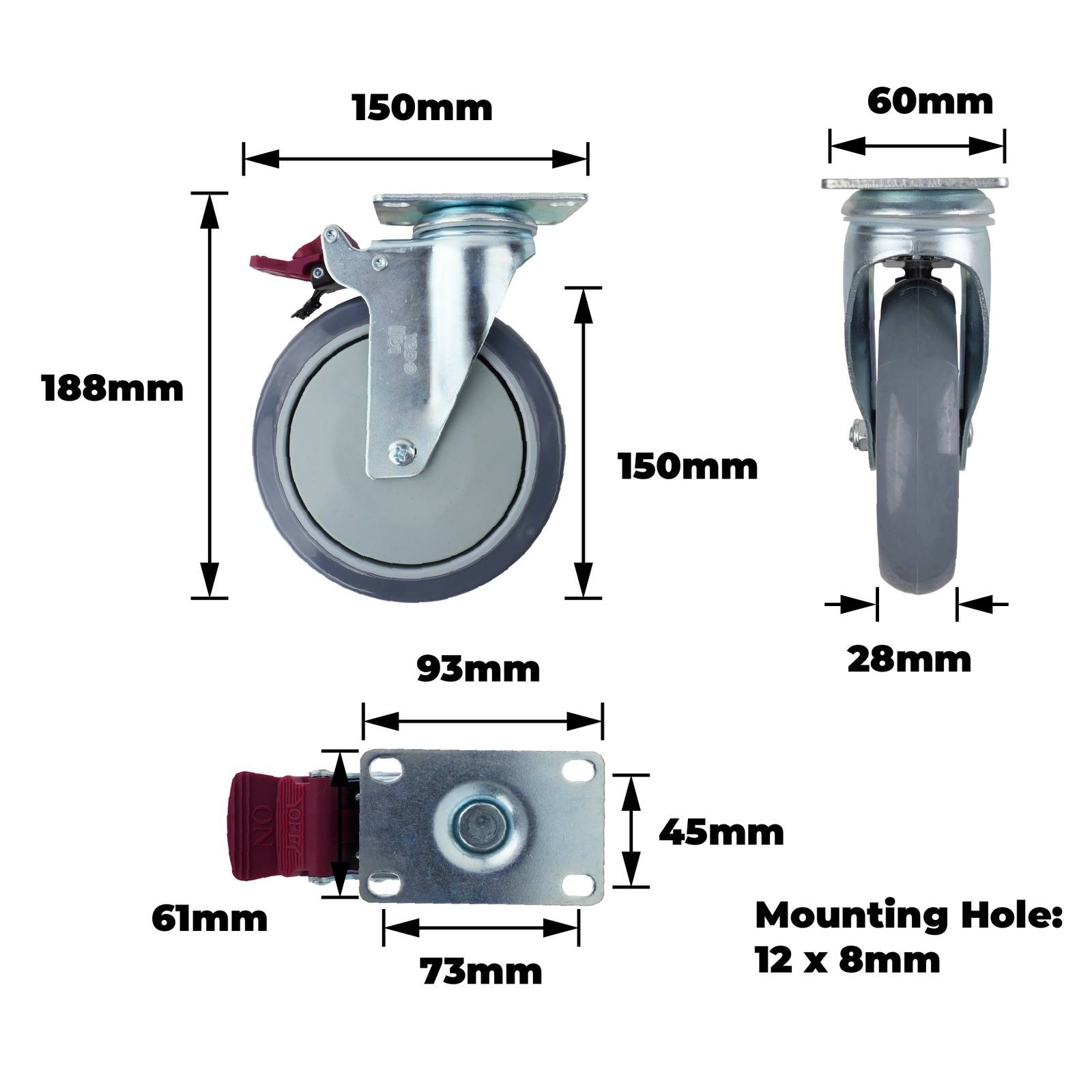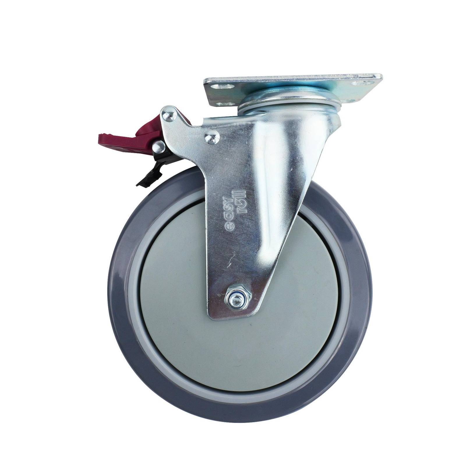 This swivel brake castor is engineered for DIY enthusiasts seeking robust and reliable mobility solutions. Ideal for utilising in customised furniture, carts, or industrial equipment, it features a ball bearing mechanism and a single raceway design to ensure smooth motion under loads up to 130 kgs. The polyurethane tyre provides durability while the steel housing and bearing steel offer enhanced strength for long-term application.Detailed