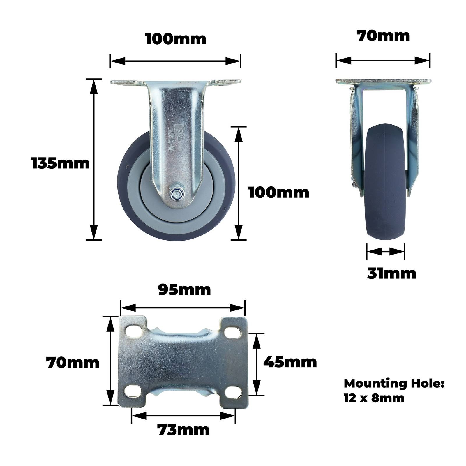 100MM GREY RUBBER FIXED PLATE
