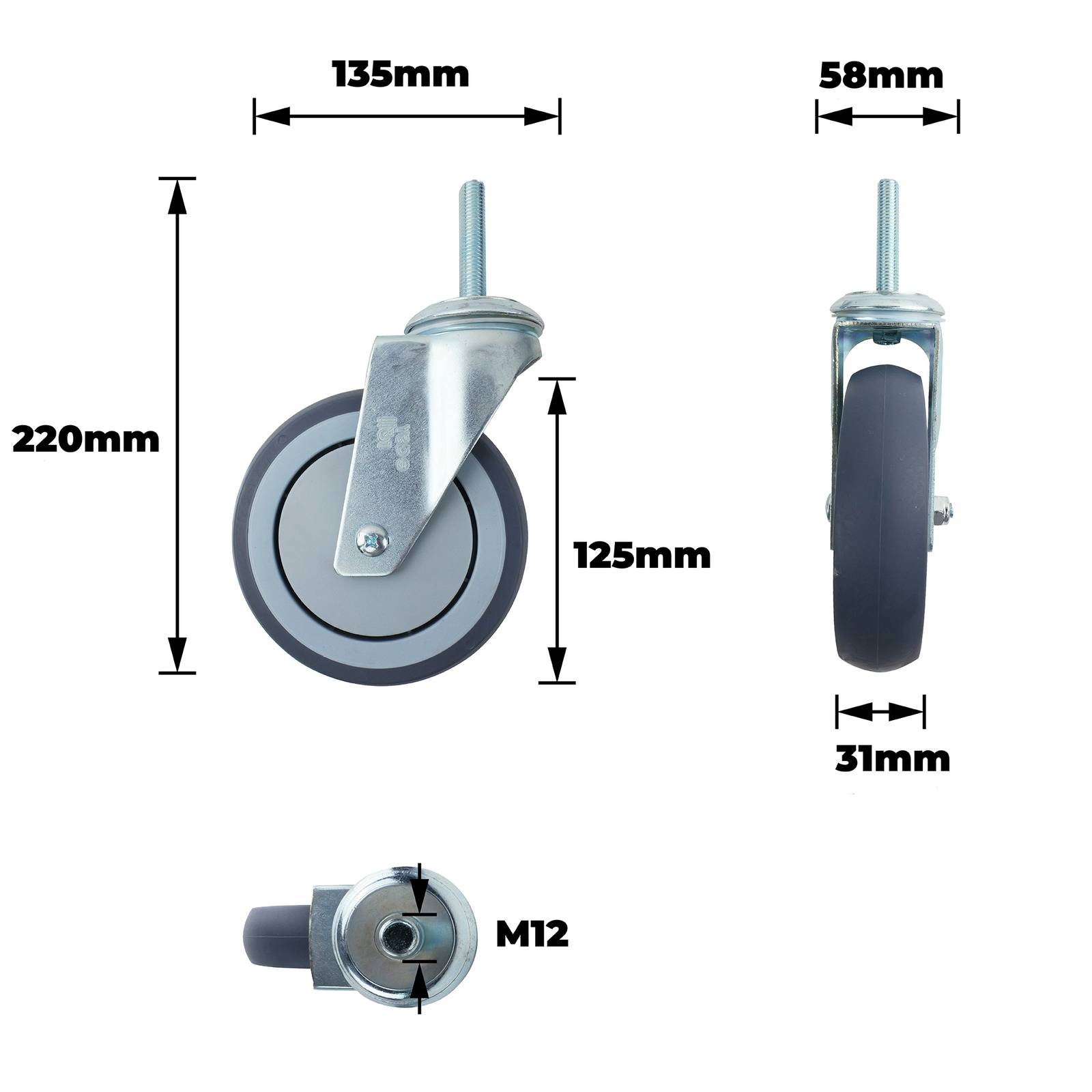 125MM GREY RUBBER SWIVEL EXPBO is engineered for DIY enthusiasts requiring dependable mobility and durability. Designed with precision bearings and a single raceway, this swivel caster supports loads up to 130kg and features a robust stainless steel housing with a resilient rubber wheel. Ideal for retrofitting, custom cabinetry, and workshops, it combines technical integrity with straightforward installation, making it a practical choice for both workshop and retail applications.Detailed