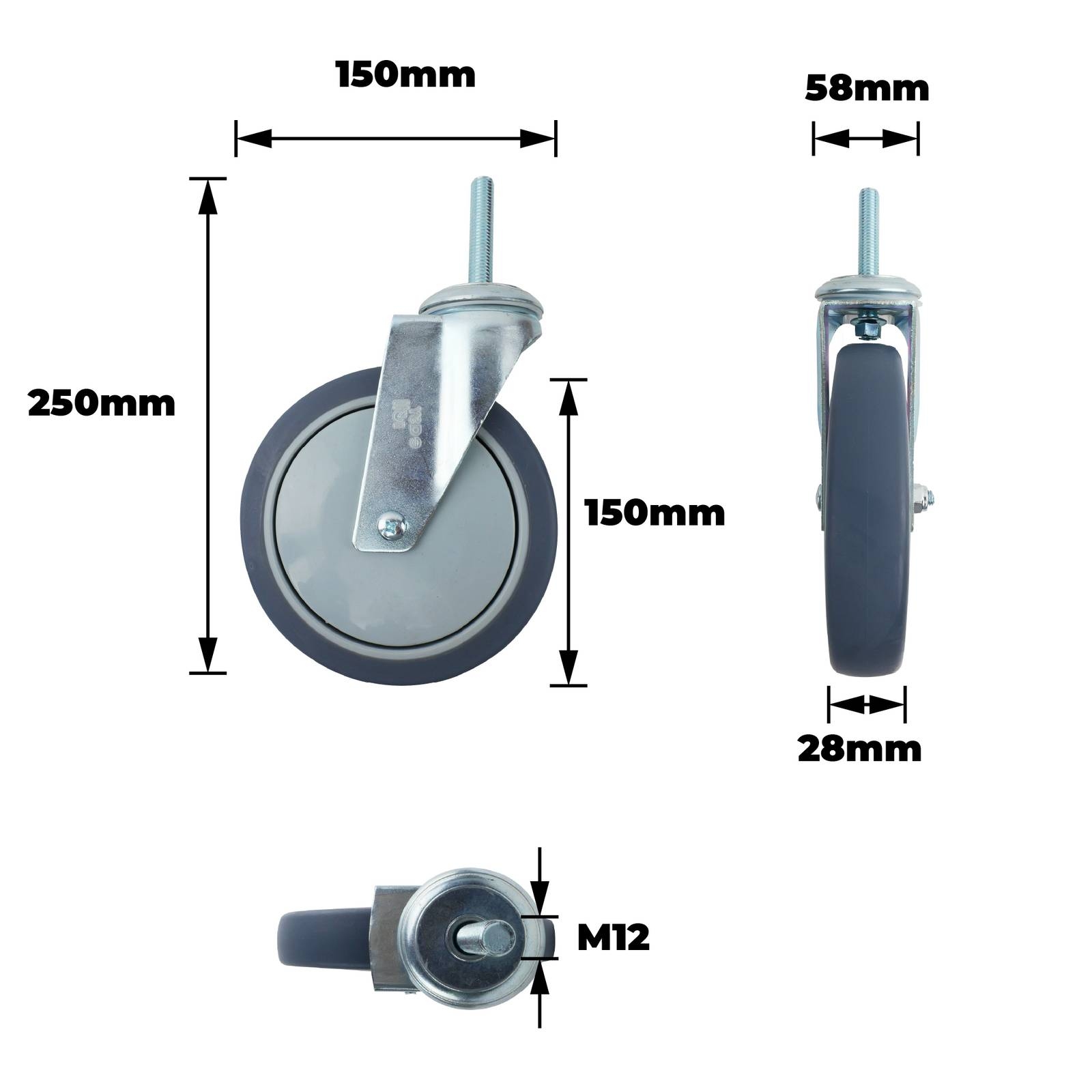 150MM GREY RUBBER SWIVEL EXPBO is engineered for demanding DIY applications requiring durability and precision. This swivel features precision bearings and a robust stainless steel housing that supports loads up to 130 kgs. Its single raceway design paired with tough rubber construction ensures stable performance under heavy duty use. The product’s mounting size of 12x75 allows for flexible installation in diverse repair or workshop projects where technical quality is paramount.Detailed