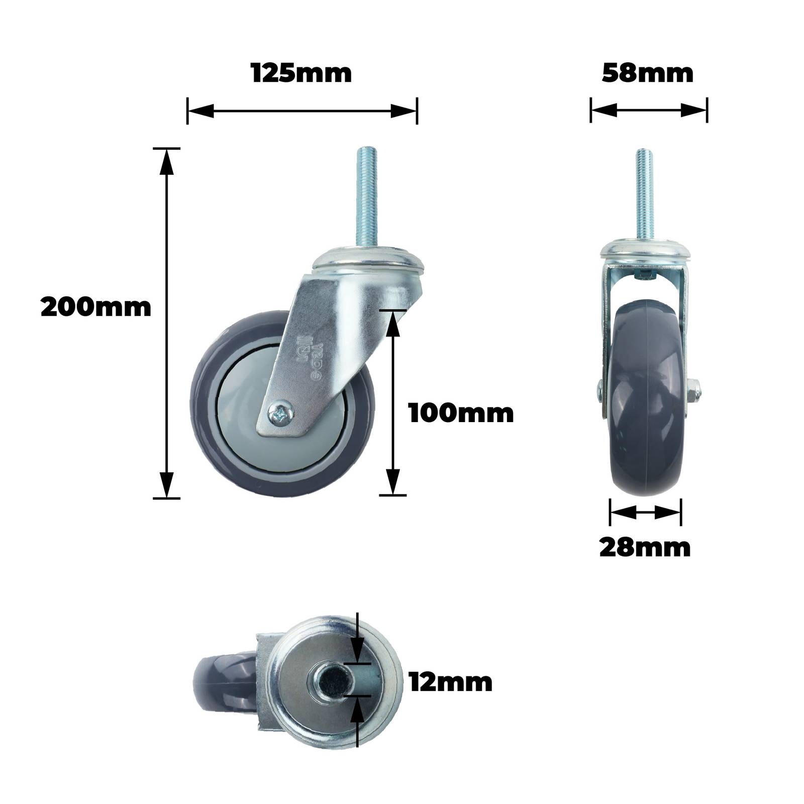 100MM GREY URETHANE SWIVEL EXP is a versatile swivel device incorporating precision bearing technology and a durable stainless steel housing designed to support up to 120 kg load capacity. With its single raceway design and 12x75 mounting size, this product is well-suited for a range of DIY applications requiring reliable rotational movement and stability. It also features urethane wheels that enable smooth operation and precise technical performance.Detailed