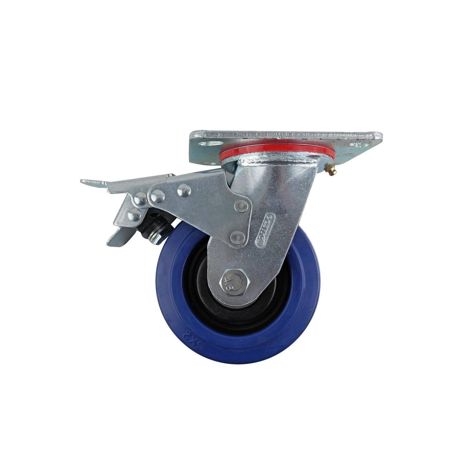 125MM BLUE RUBBER SWIVEL PLATE BRAKE CASTOR