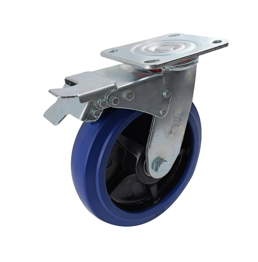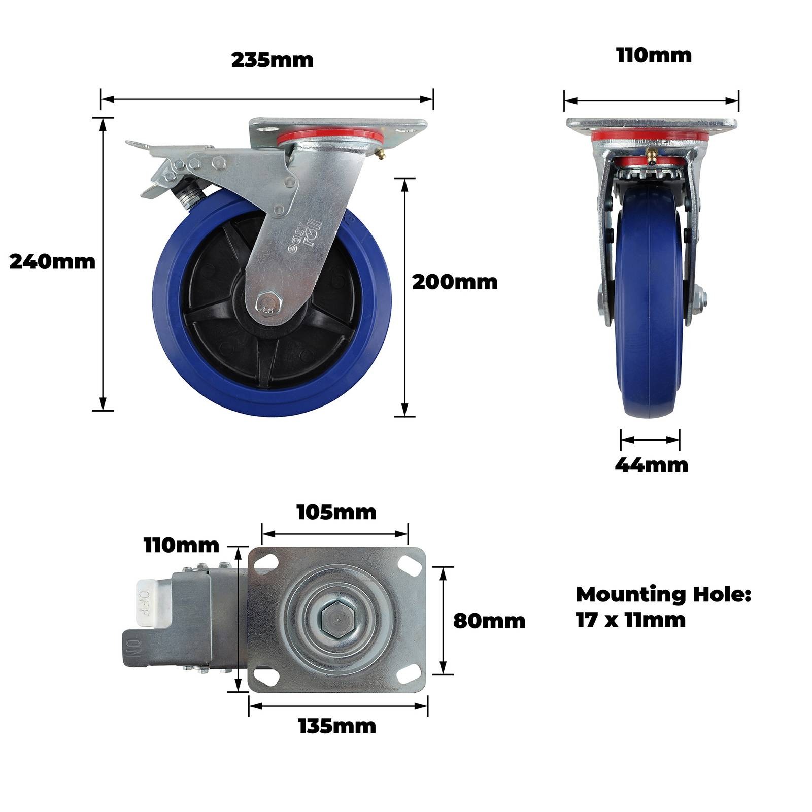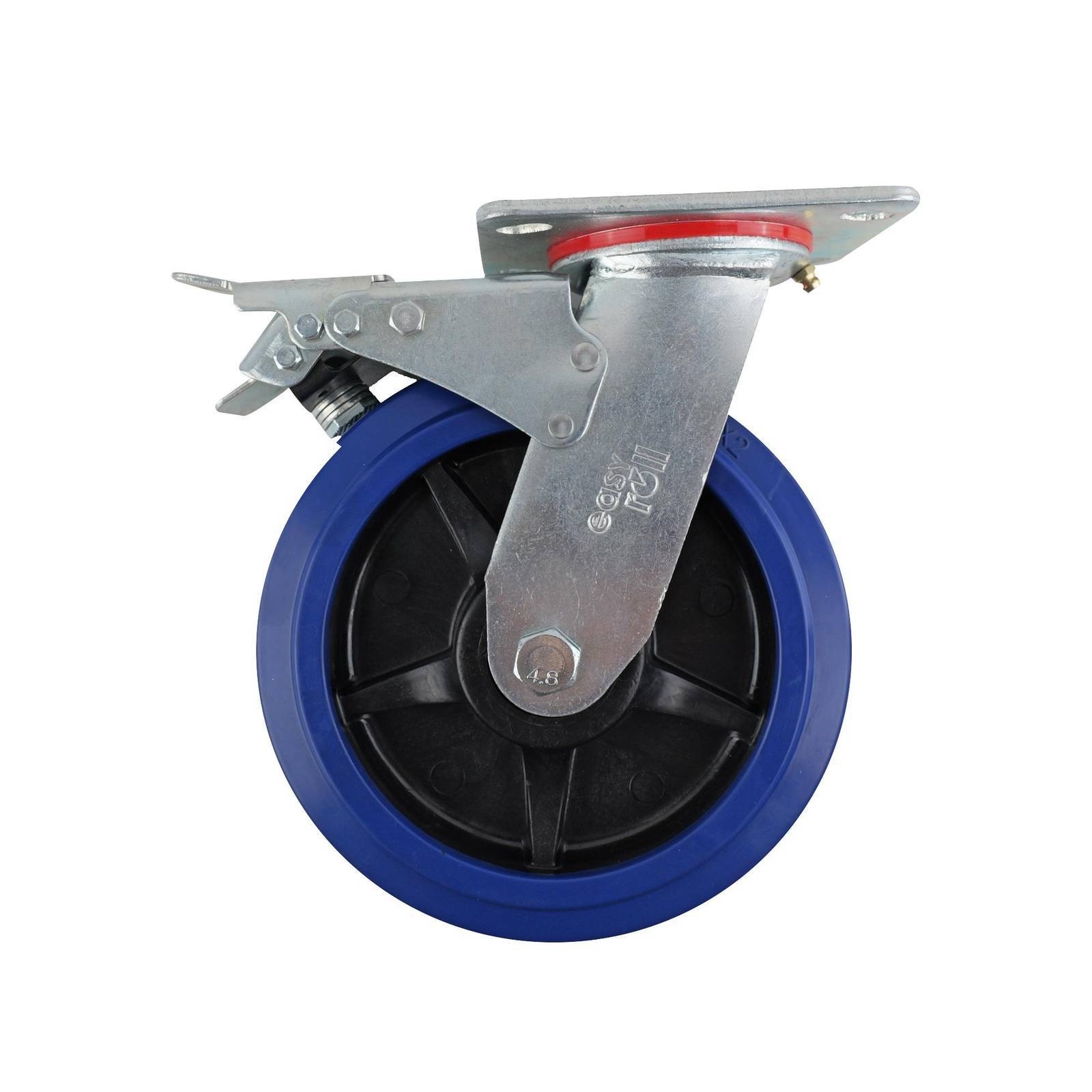 200MM BLUE RUBBER SWIVEL PLATE BRAKE CASTOR 500KG
