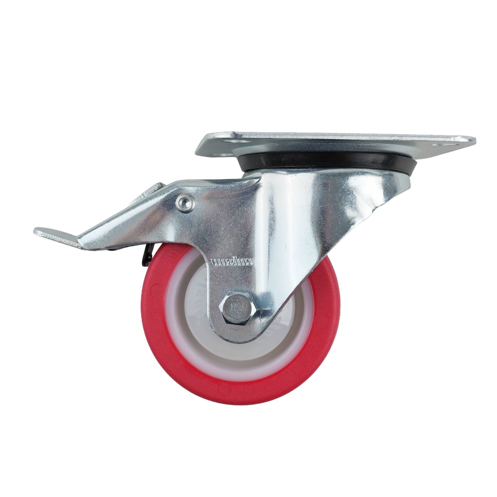 80MM RED URETHANE SWIVEL PLATE BRAKE CASTOR 130KG