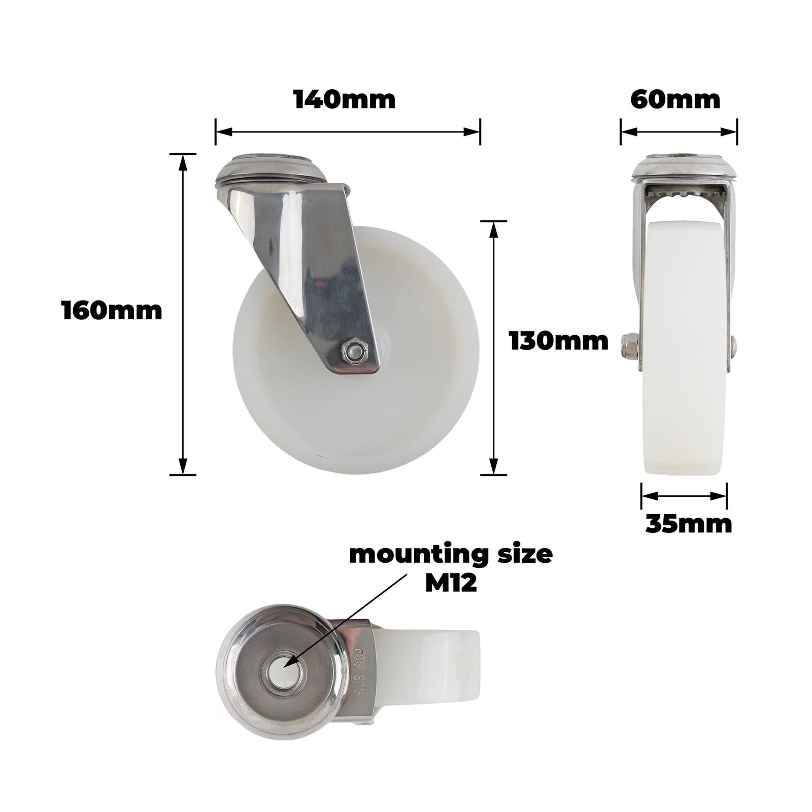 This robust castor is engineered for precision in demanding DIY applications. Ideal for reliable mobility in workshops, it offers consistent performance with its stainless steel housing and ball bearing design. The white nylon construction reduces friction and wear, ensuring smooth movement even under heavy loads. Its easy mounting with an M12 size bolt hole provides seamless integration into various projects, giving DIY enthusiasts confidence in its durability and efficiency.Detailed