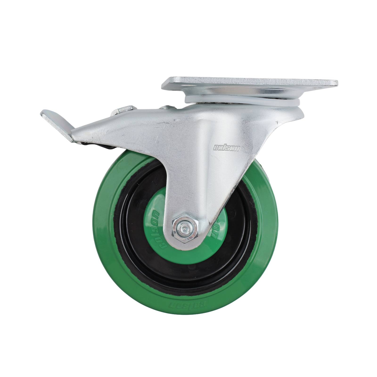 125MM GREEN RUBBER SWIVEL PLATE BRAKE CASTOR
