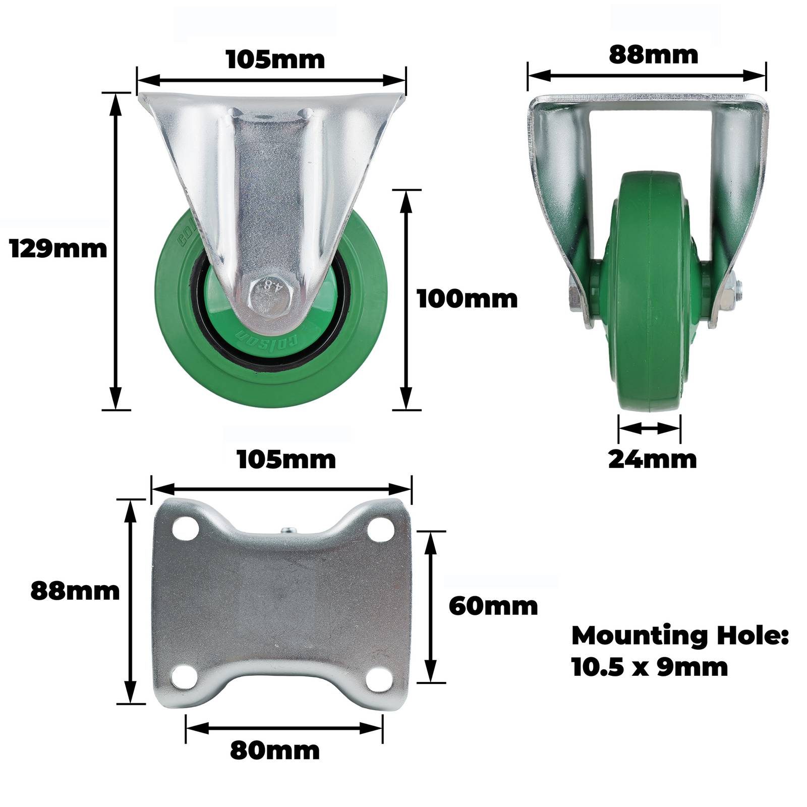 100MM GREEN RUBBER FIXED PLATE CASTOR