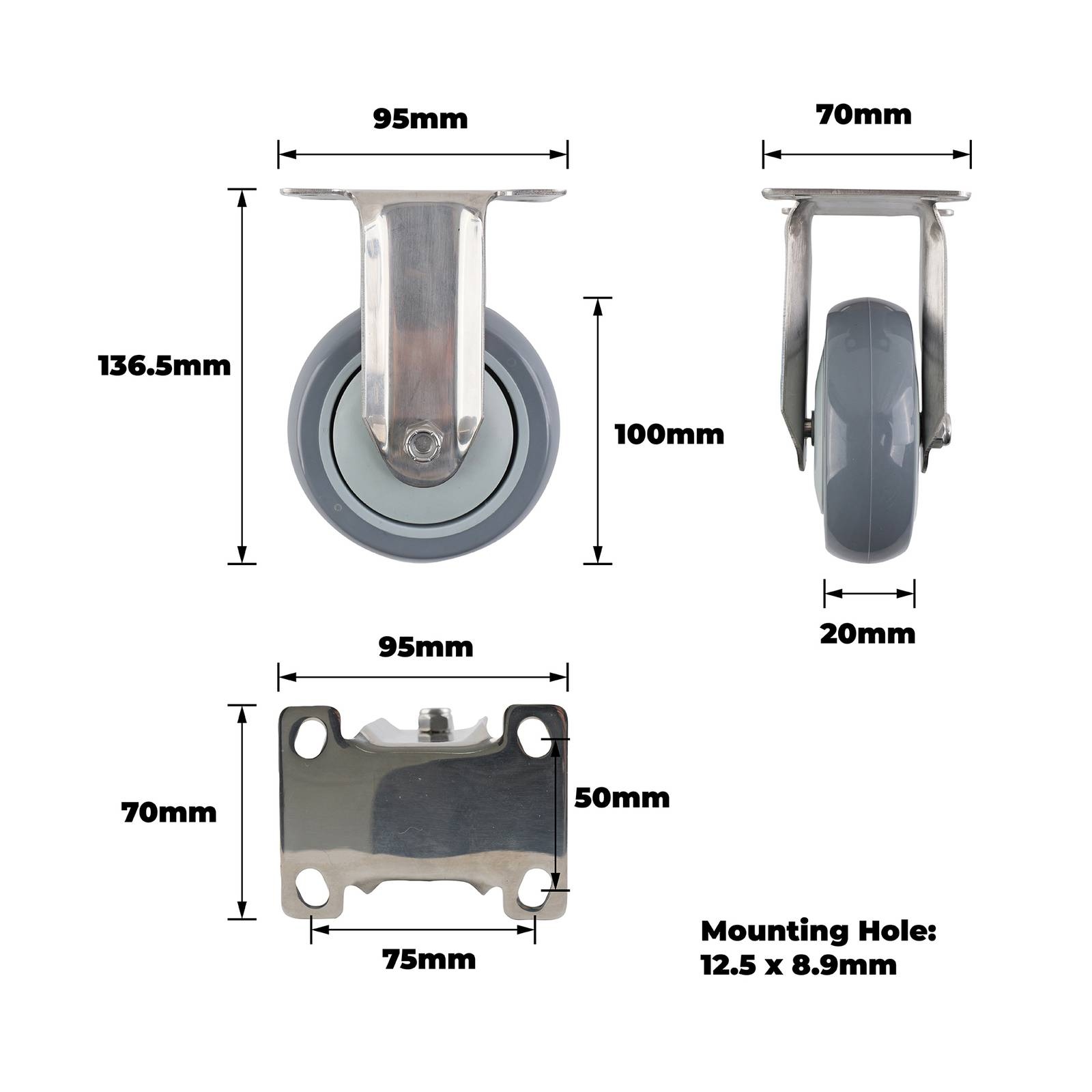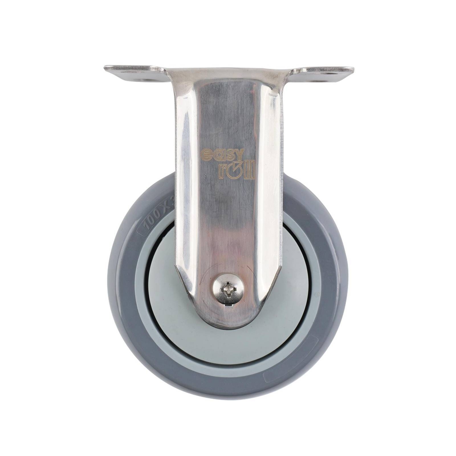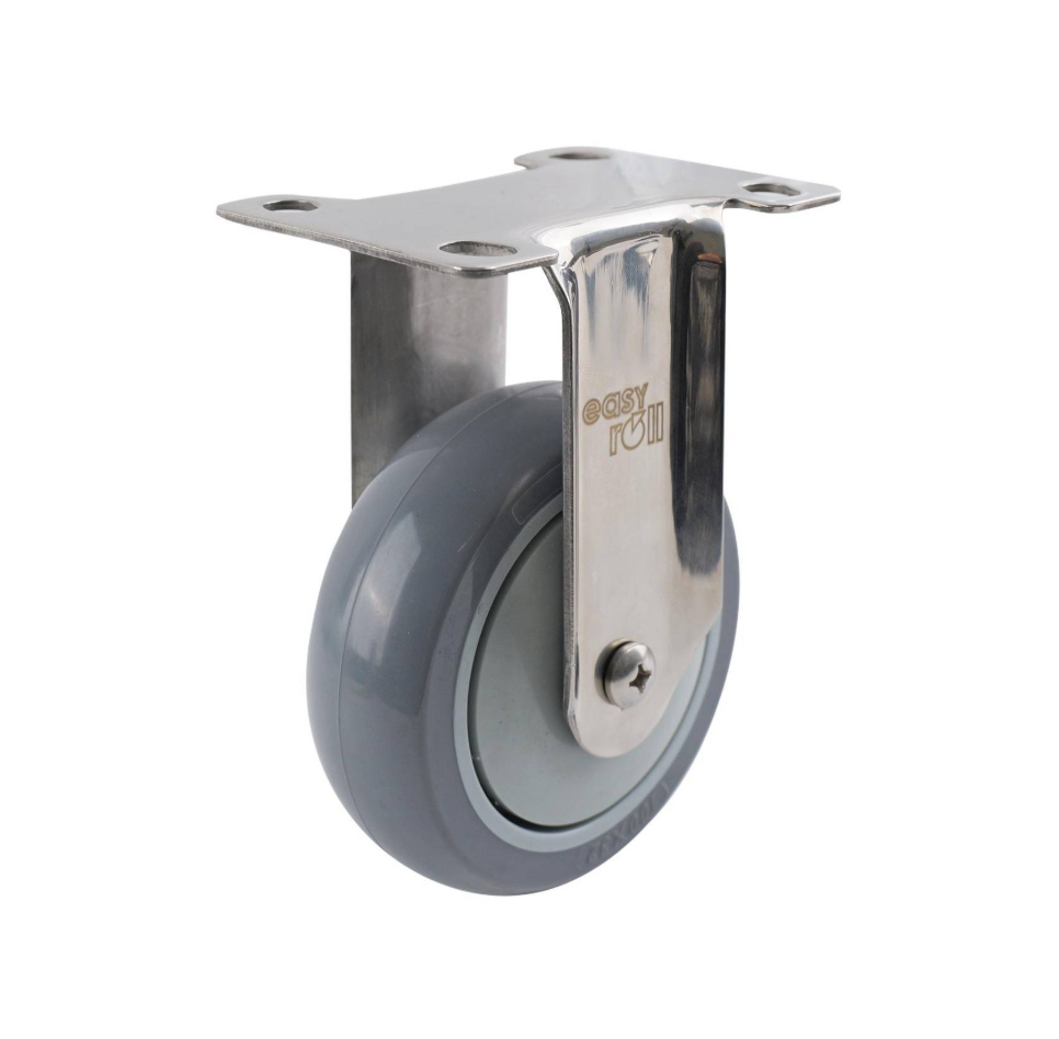 SS 100MM GREY URETHANE FIXED PLATE CASTOR