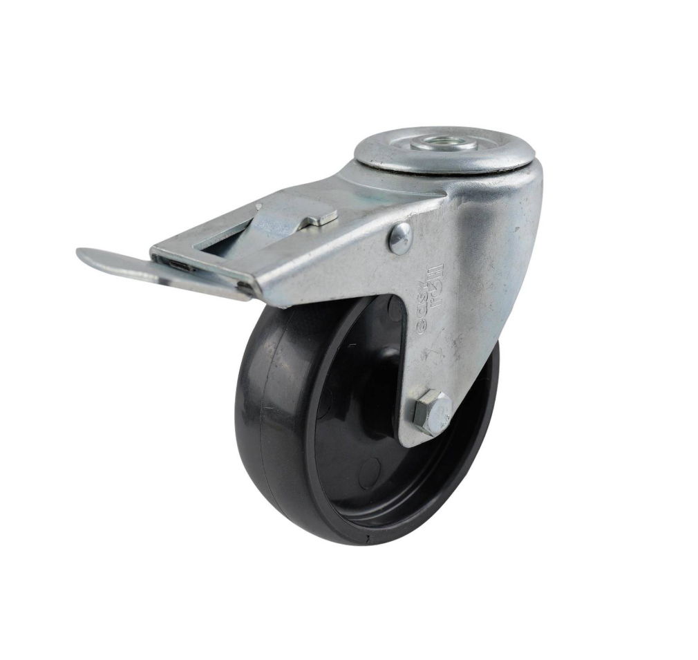 100MM BLACK POLY BOLT HOLE BRAKE CASTOR