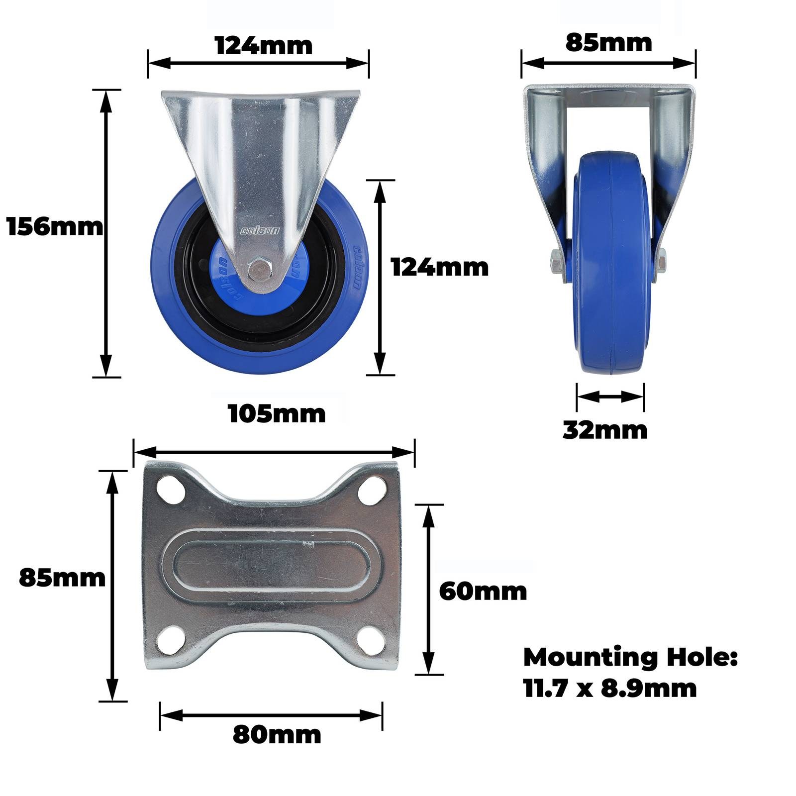 125MM BLUE RUBBER FIXED PLATE CASTOR
