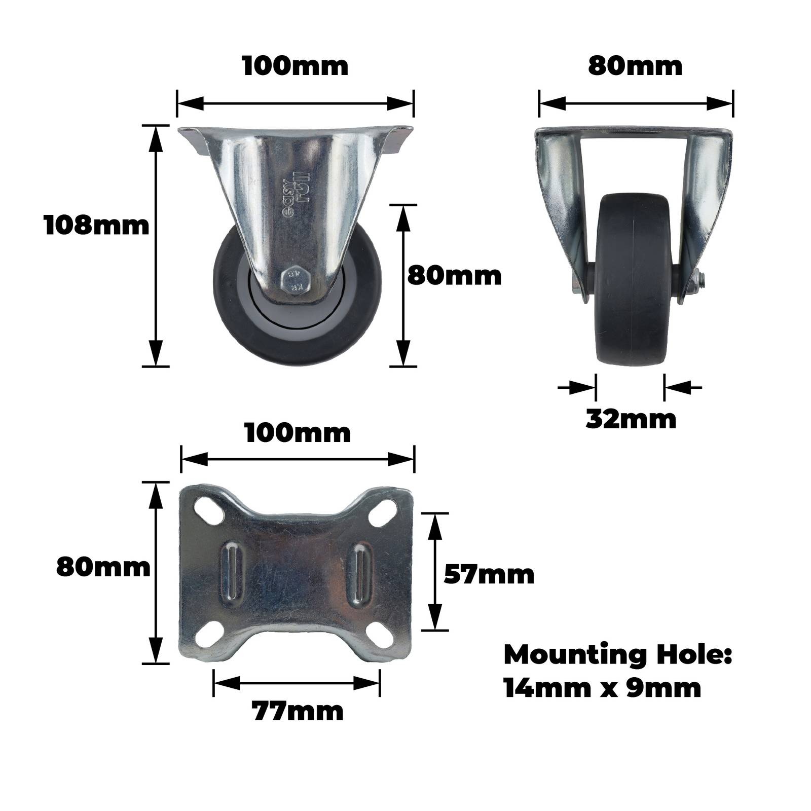 - Robust steel housing and TPR tyre deliver strength and longevity in heavy applications.