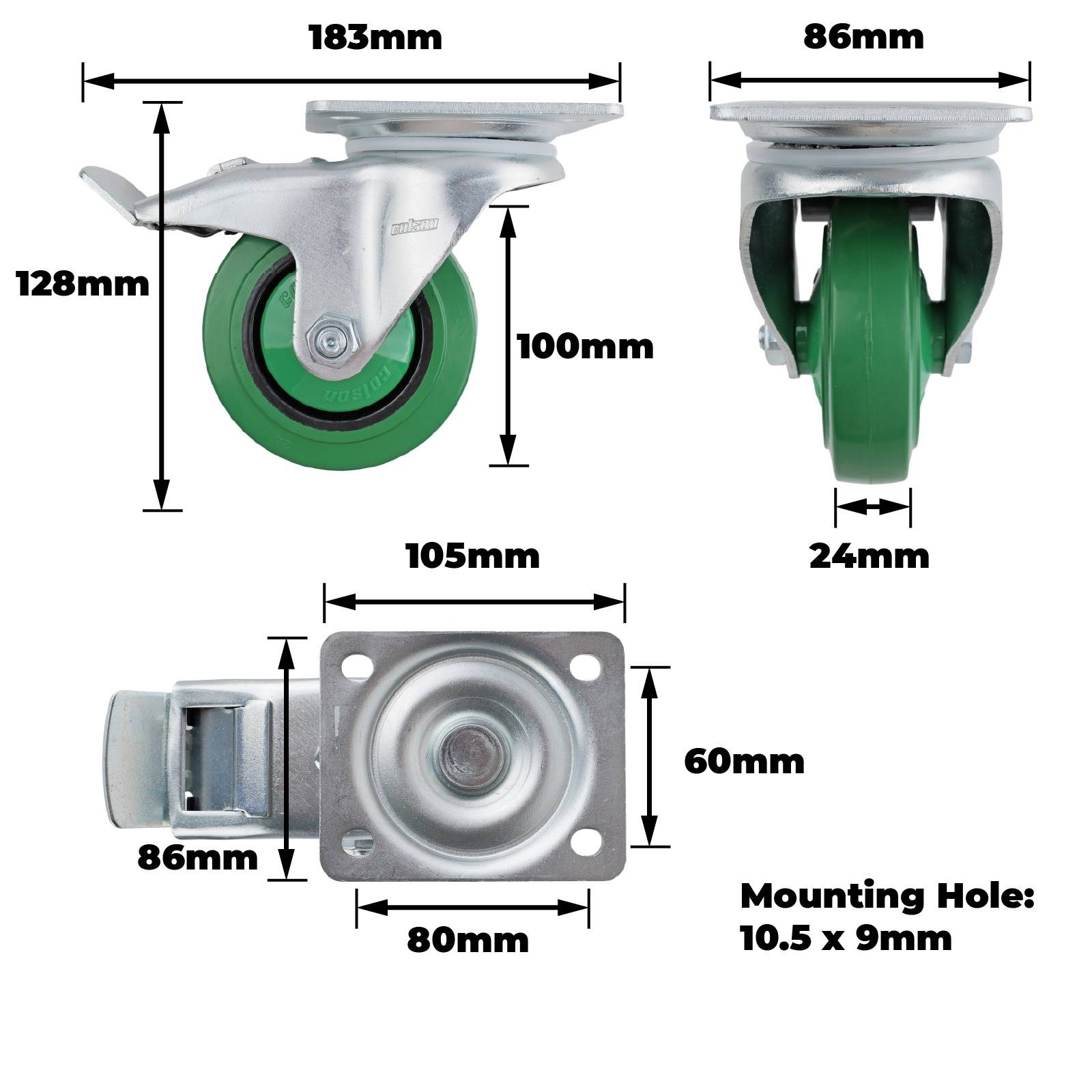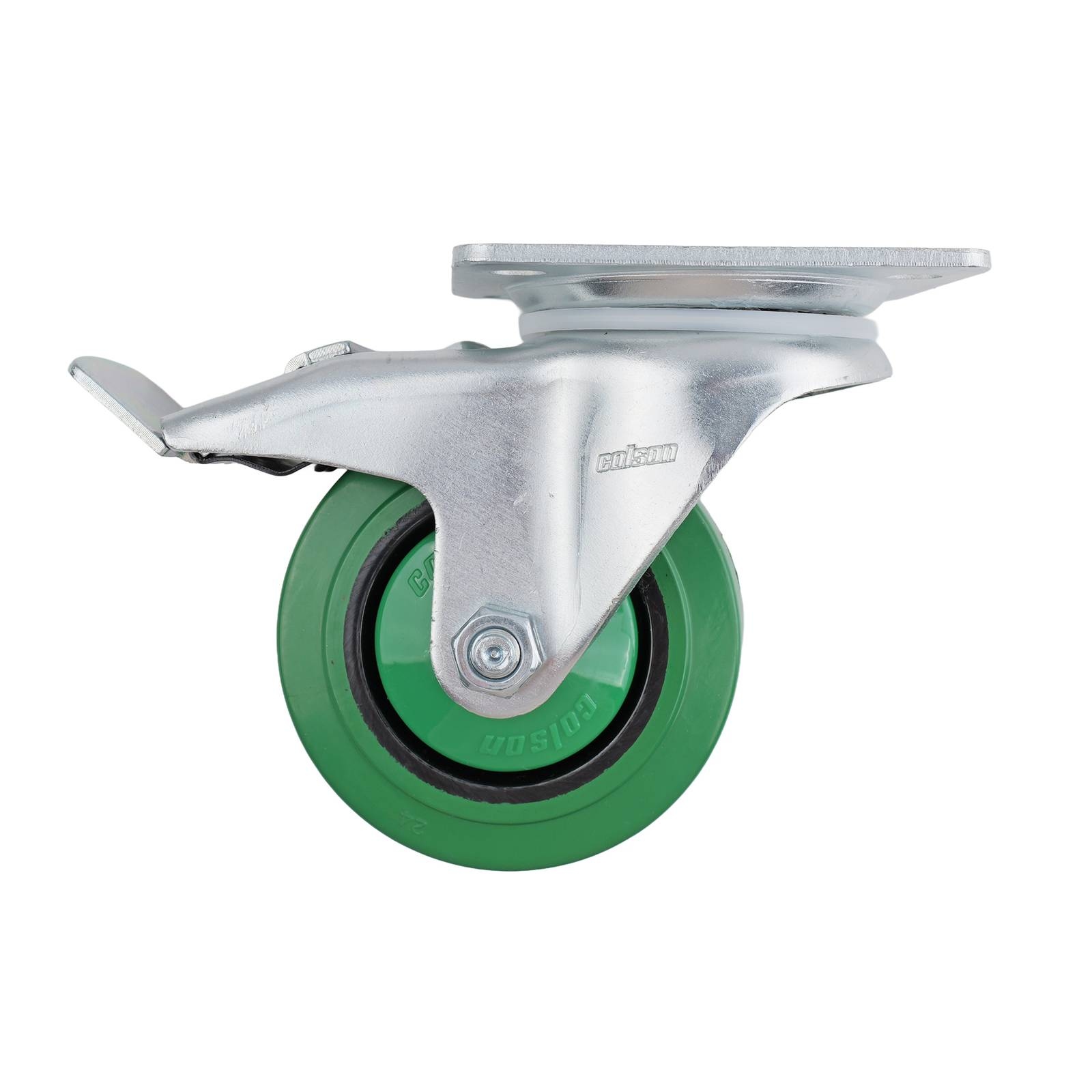 100MM GREEN RUBBER SWIVEL PLATE BRAKE CASTOR