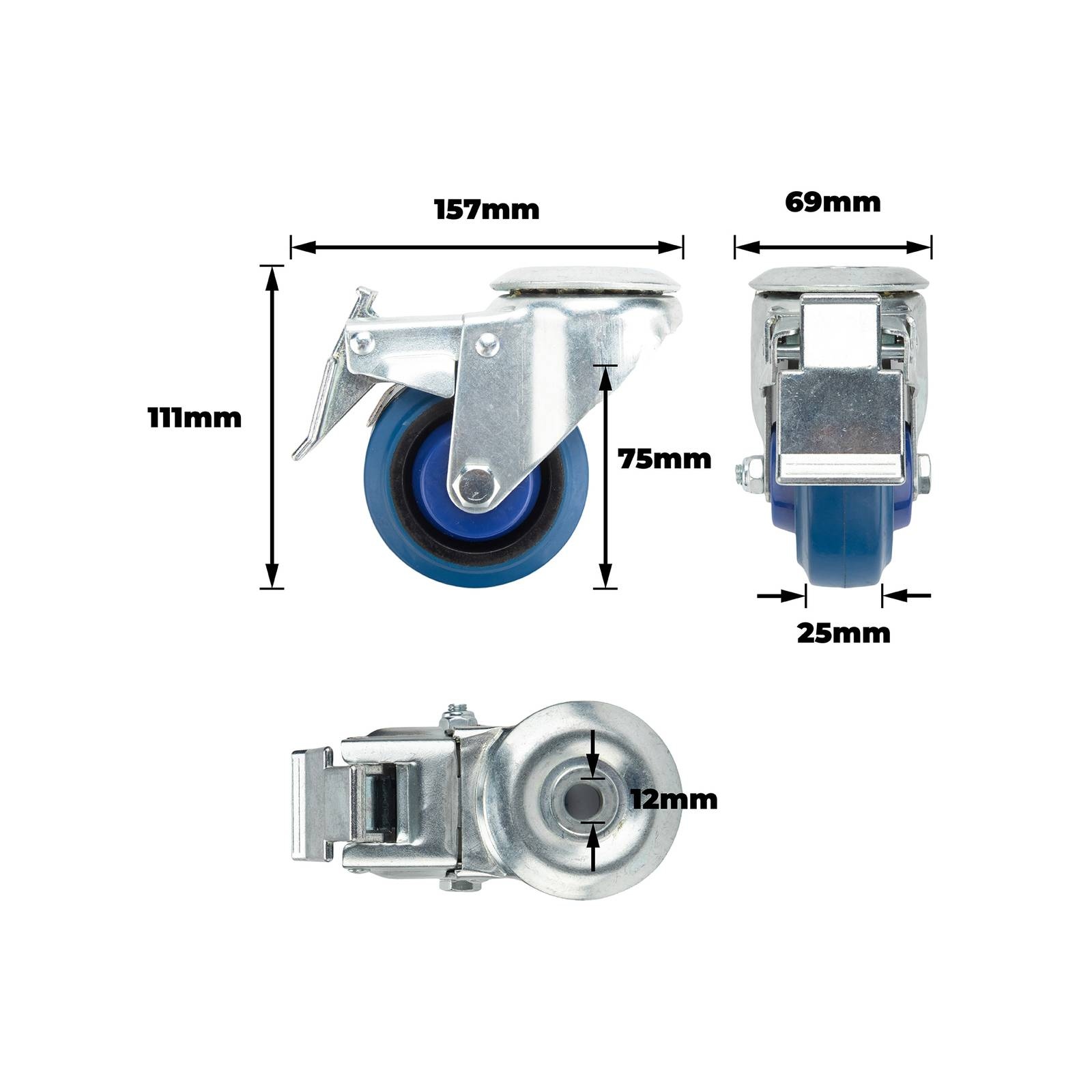 75MM BLUE RUBBER BOLT HOLE BRAKE CASTOR is engineered for industrial and DIY applications, offering a reliable, smooth rotating solution. Designed to support a load of up to 90 kgs, it features a roller bearing mechanism and a stainless steel housing ensuring durability. Its 75mm blue rubber design provides effective braking, making it essential for equipment requiring precise movement control. Perfect for retail and online buyers who appreciate technical, practical information without unnecessary frills.Detailed