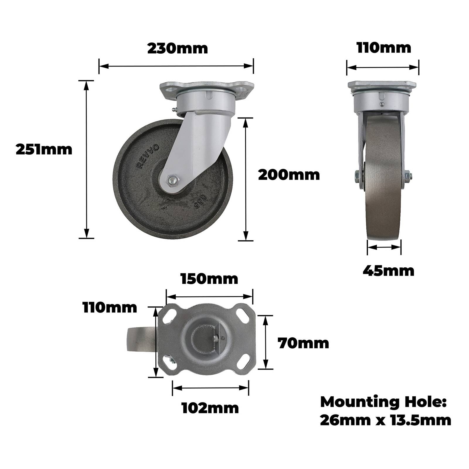 200MM CAST IRON SWIVEL PLATE CASTOR