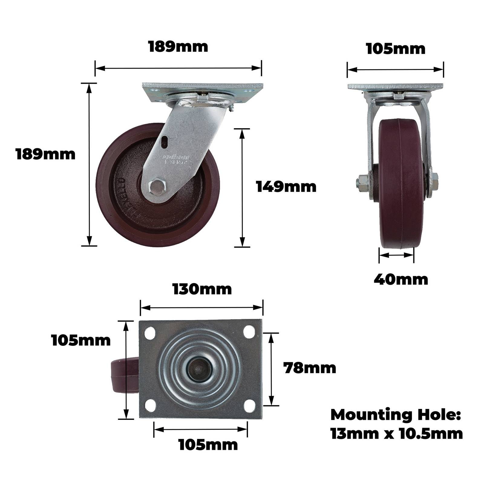 150MM URETHANE/CAST IRON SWIVEL PLATE CASTOR