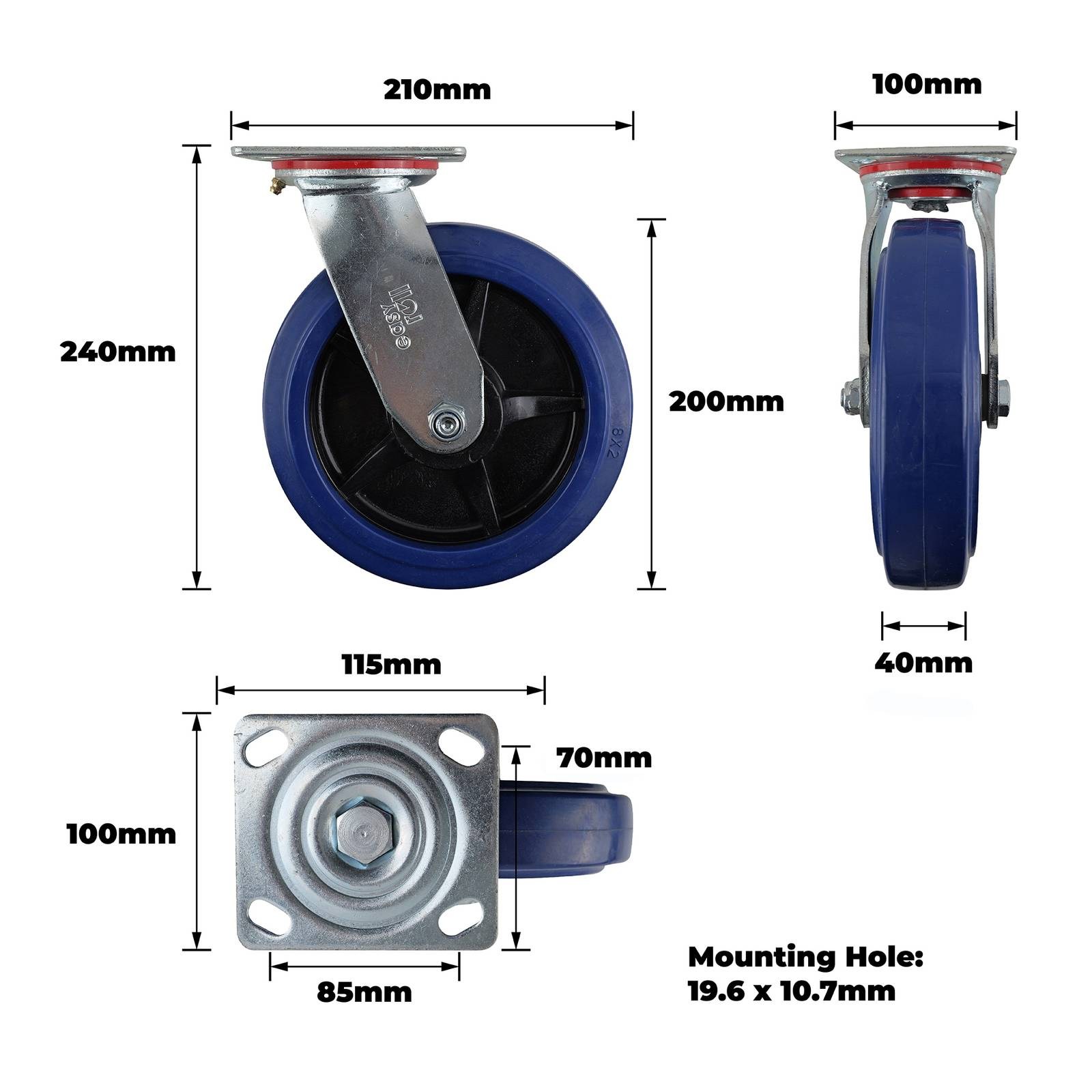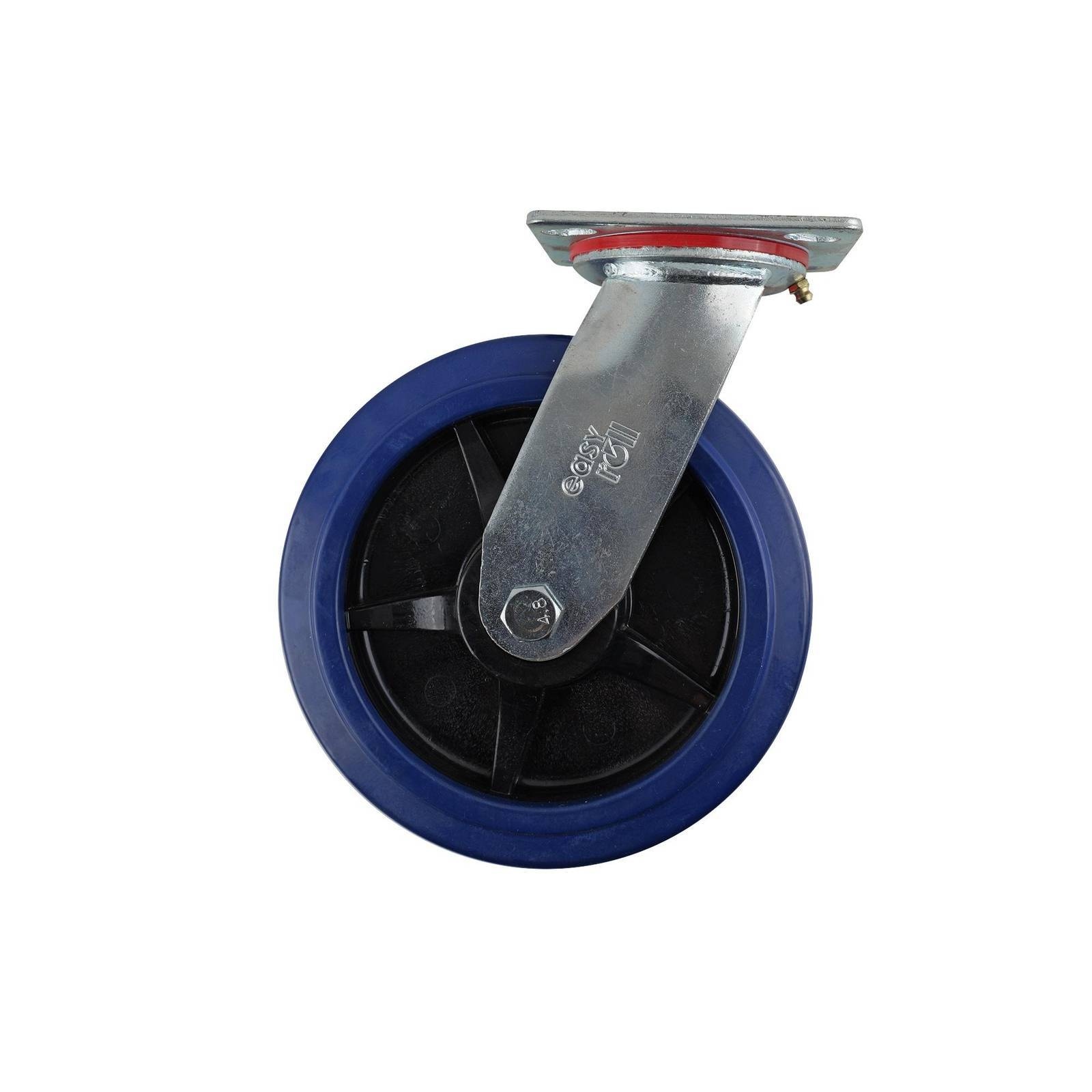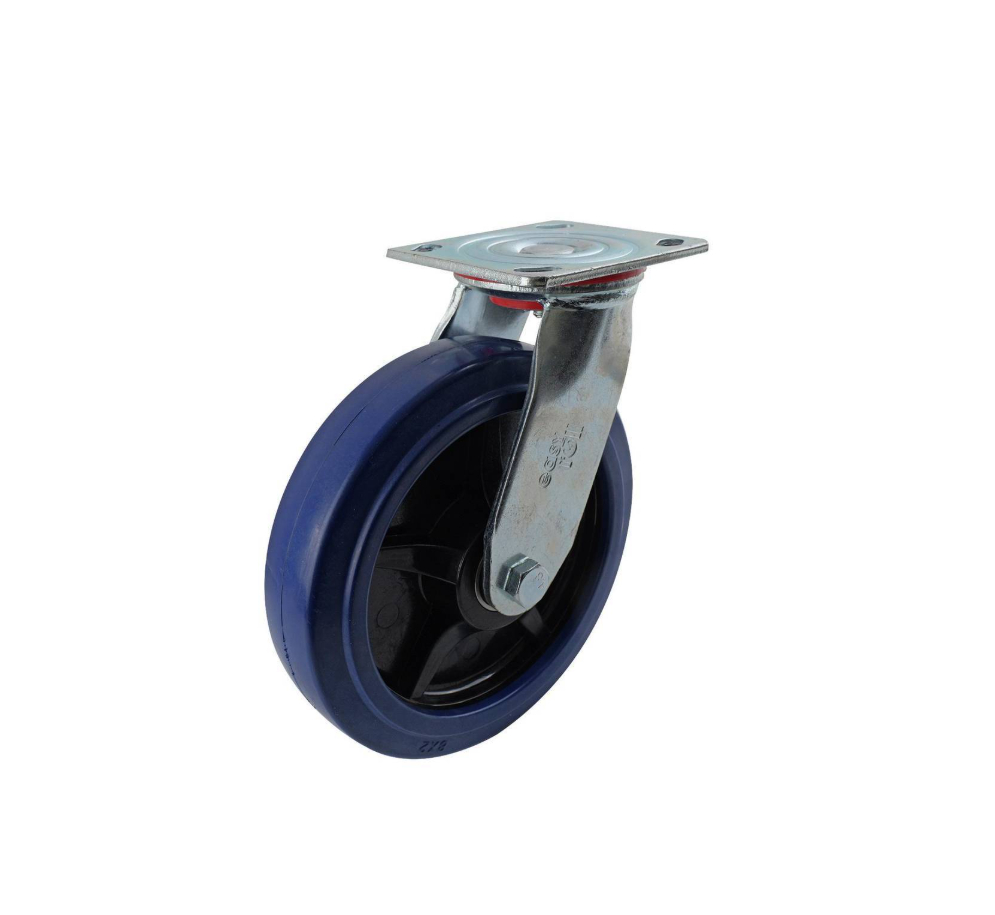 200MM BLUE RUBBER SWIVEL PLATE CASTOR