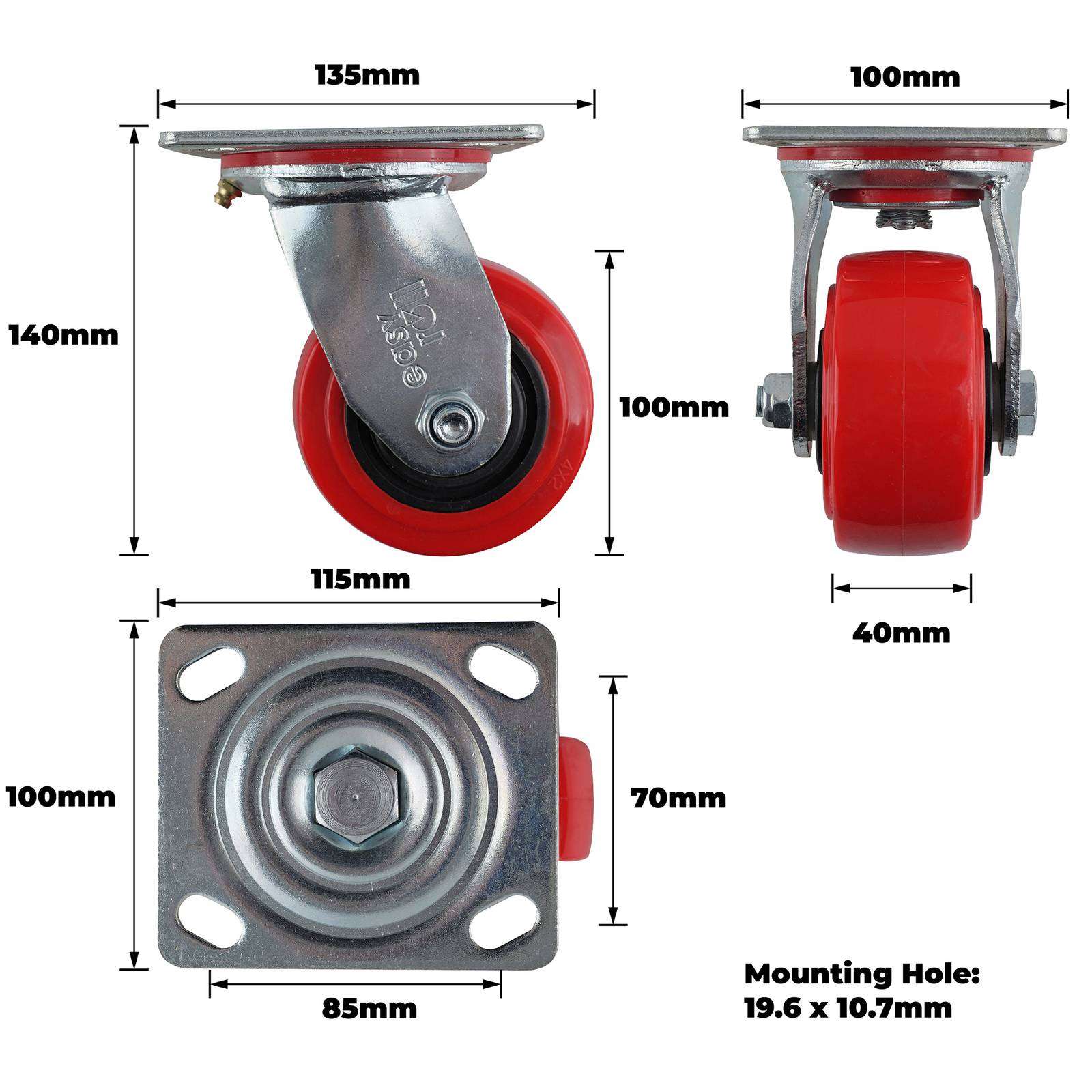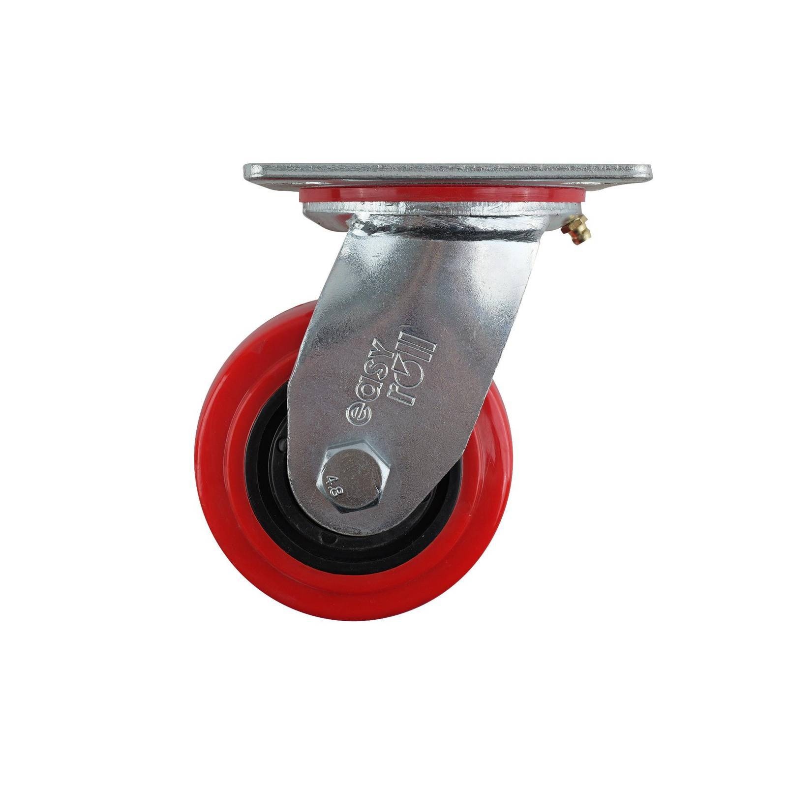 100MM RED URETHANE SWIVEL PLATE CASTOR