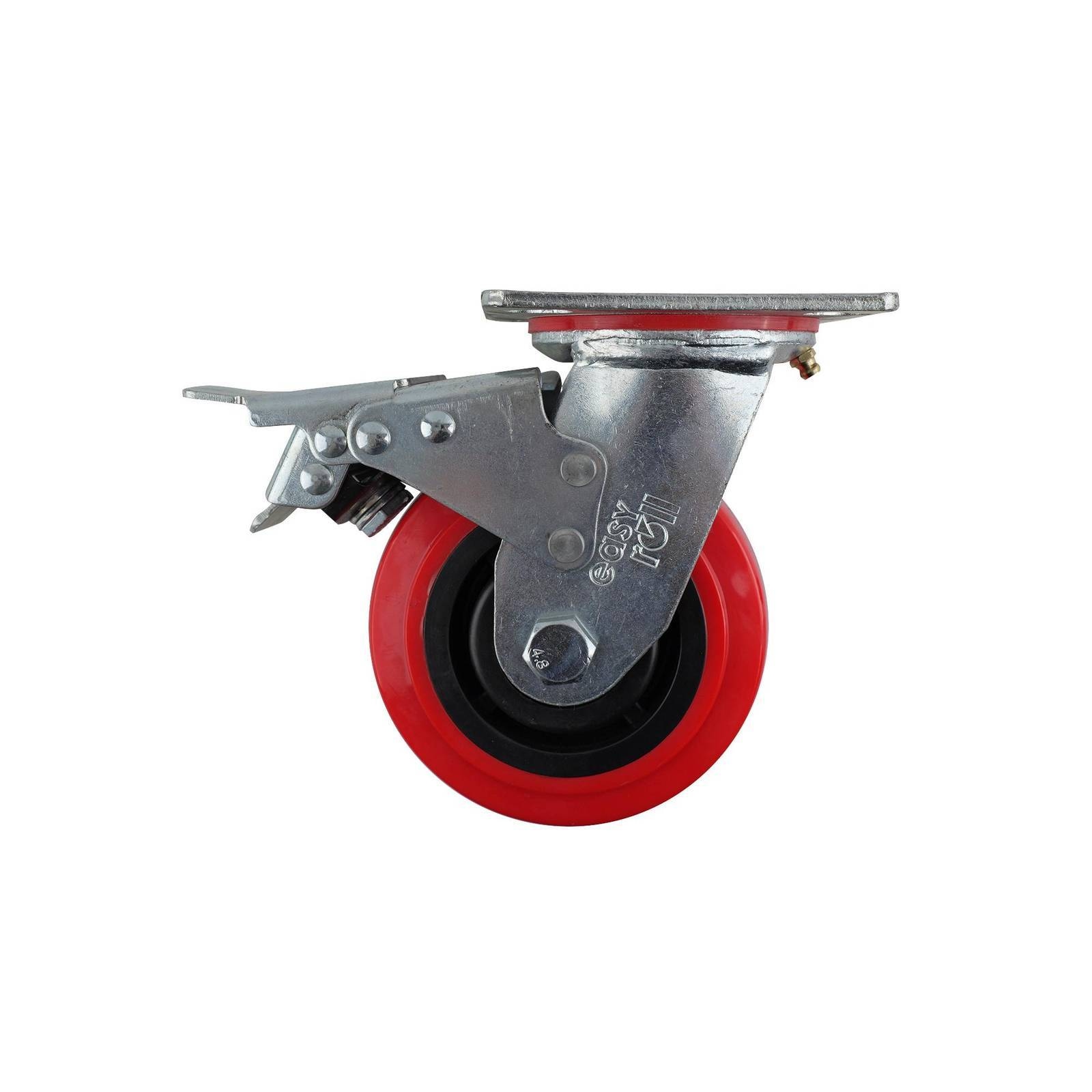 125MM RED URETHANE SWIVEL PLATE BRAKE CASTOR