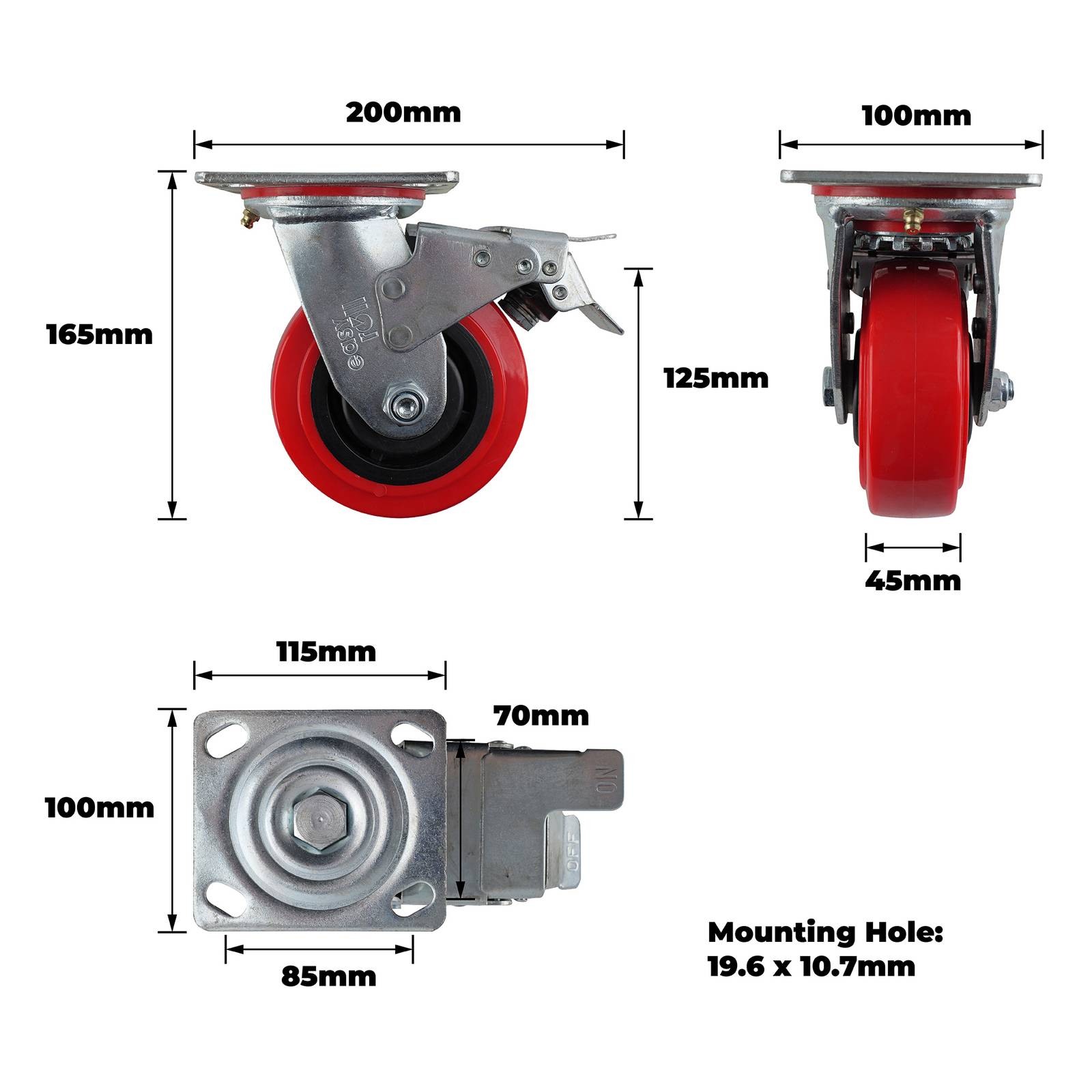 125MM RED URETHANE SWIVEL PLATE BRAKE CASTOR is engineered for robust performance in both industrial and DIY settings. This swivel brake castor features a durable steel housing and carbon steel ball bearings that enable smooth rotation and effective braking. It is built to support up to 340 kg and offers a reliable, single raceway design. Ideal for precision manoeuvring in maintenance, construction and workshop projects, this castor delivers technical benefits and practical value.Detailed