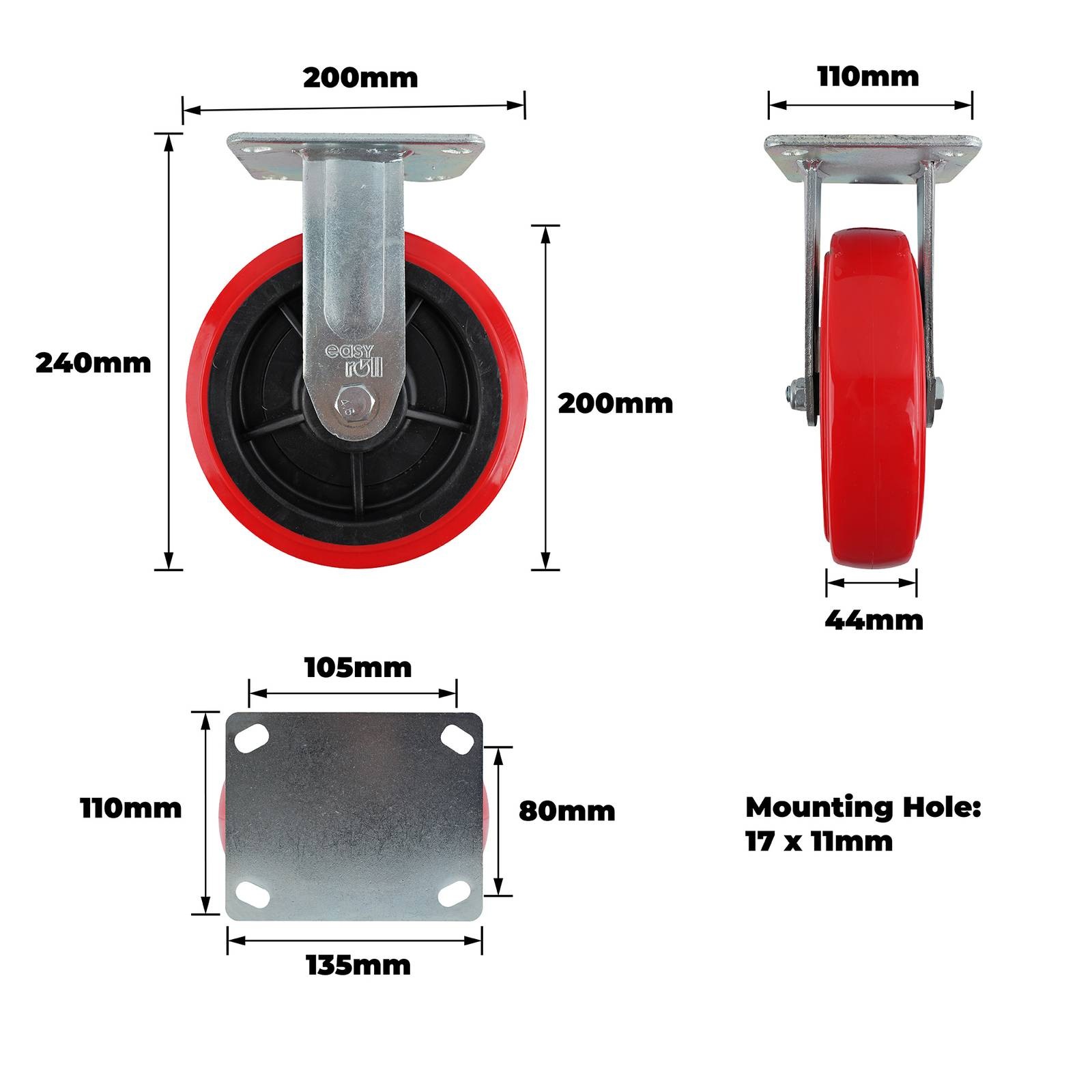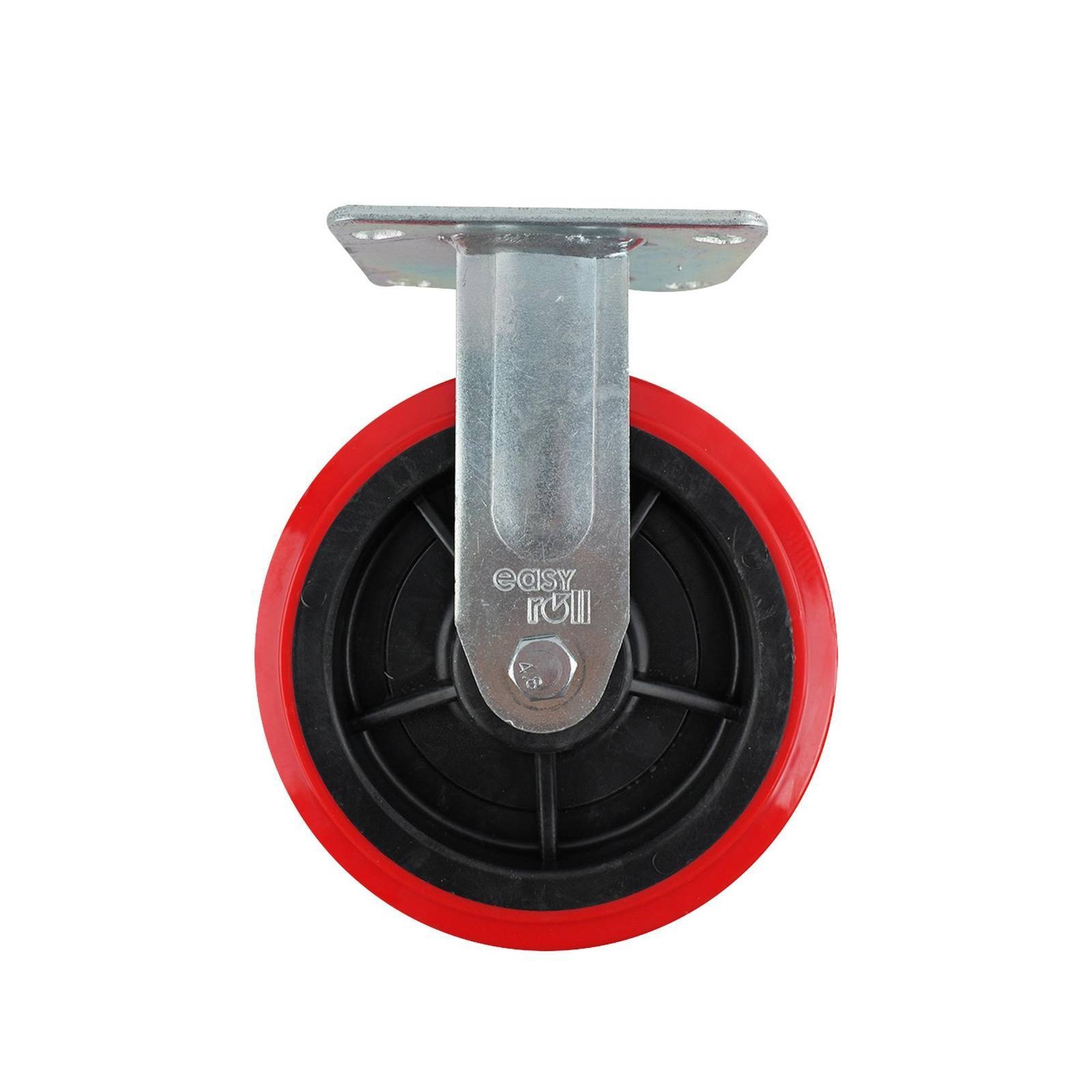 200MM RED URETHANE FIXED PLATE CASTOR 400KG