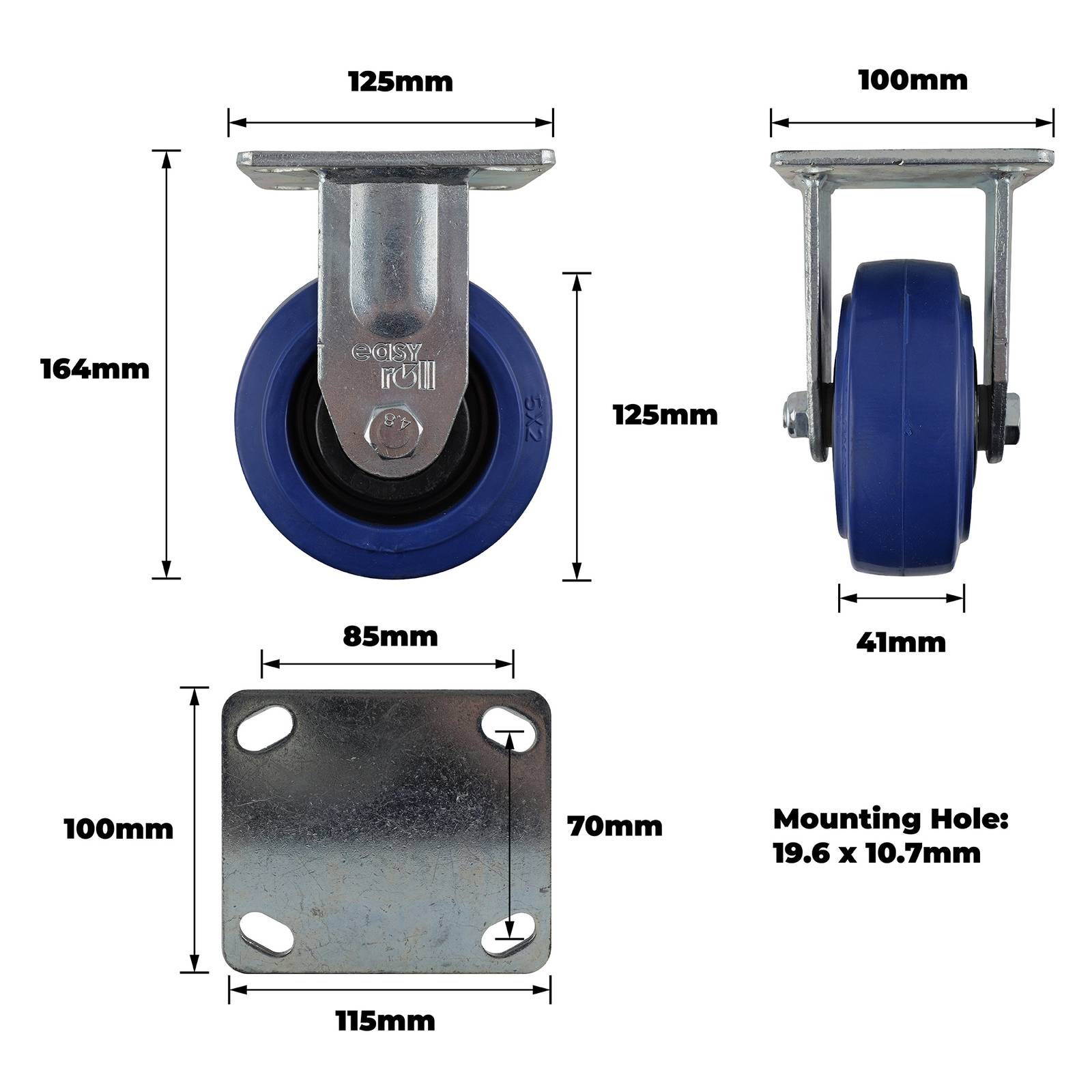 125MM BLUE RUBBER FIXED PLATE CASTOR