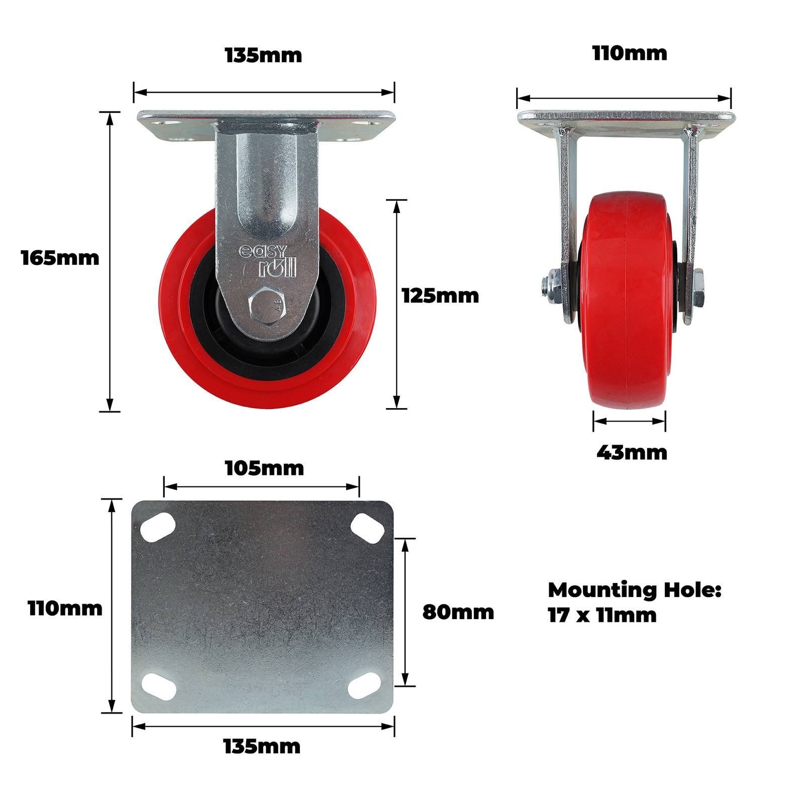 125MM RED URETHANE FIXED PLATE CASTOR is a fixed castor engineered for DIY projects that require dependable load capacity and smooth operation. Designed for both retail and online buyers who appreciate technical precision, this castor features precision bearings and a robust steel housing that withstands heavy-duty use. Its durable construction makes it ideal for maintenance, repair, and redevelopment applications where performance and reliability are paramount.Detailed