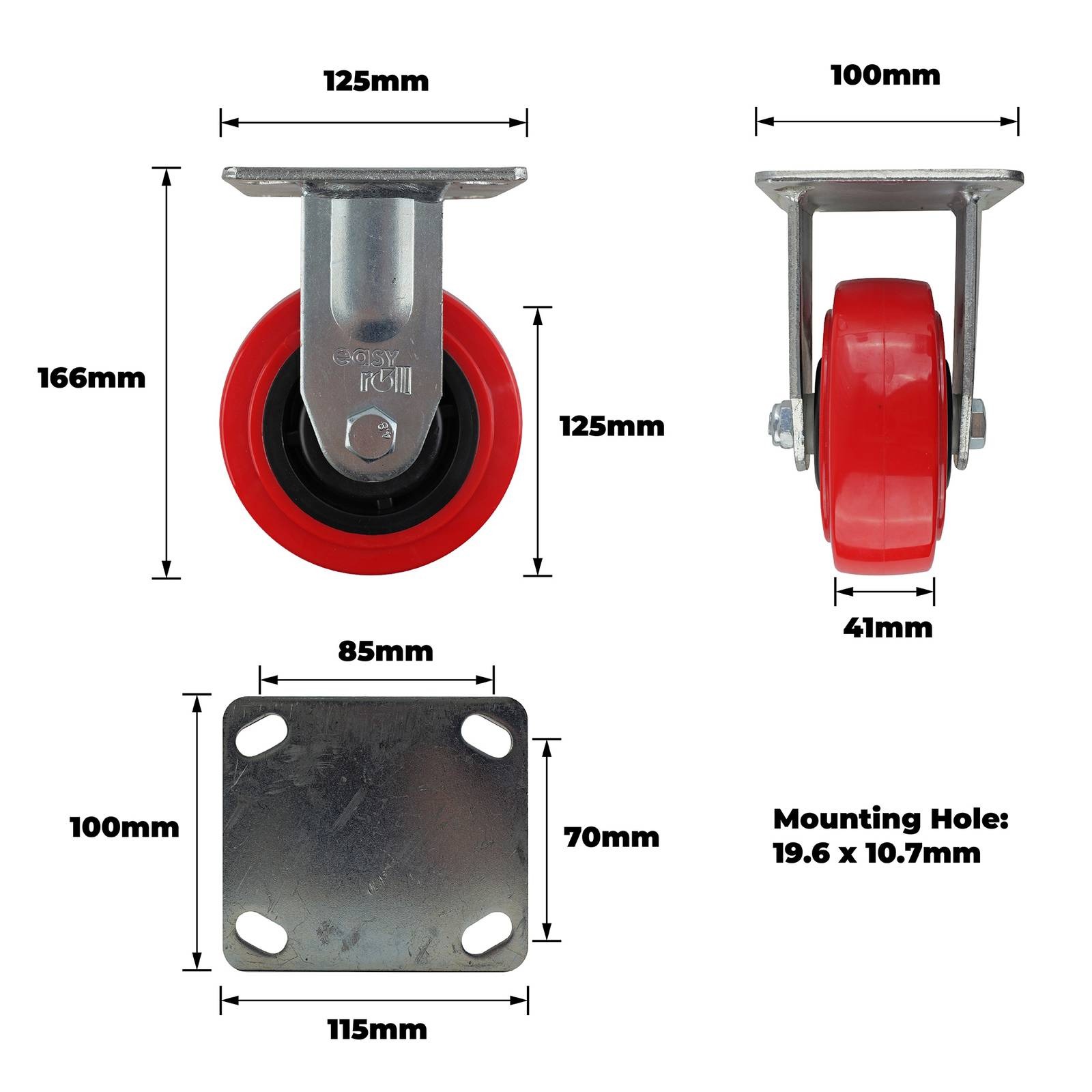 - Robust 125mm red urethane plate offers excellent resistance to wear and tear.