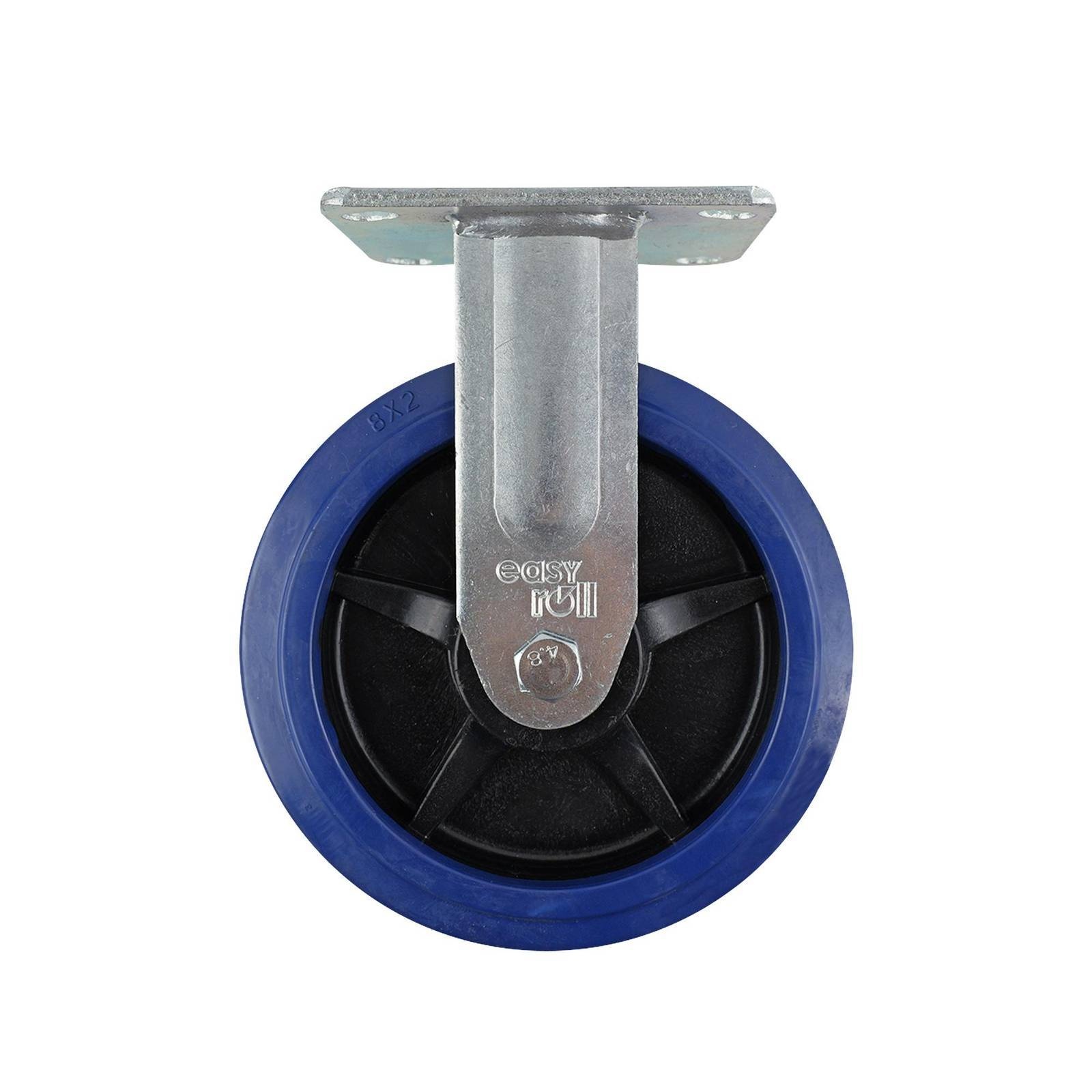200MM BLUE RUBBER FIXED PLATE CASTOR 500KG