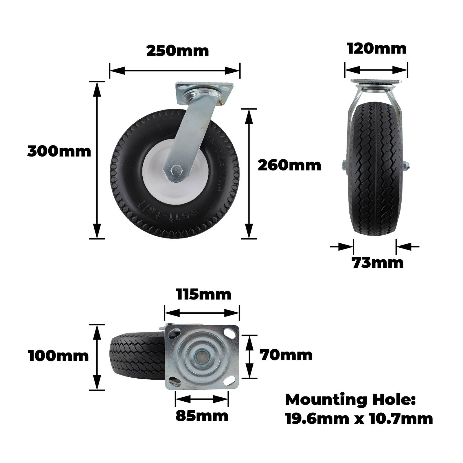 3.50-4 SWIVEL FLAT FREE CASTOR is a precision-engineered component designed for diverse DIY applications that demand reliable mobility. Its robust steel core and housing provide durability, while the single raceway ball bearing system ensures smooth rotation under load. The rubber tyre offers excellent shock absorption, making it suitable for workshops and retail settings where performance and longevity are essential.Detailed