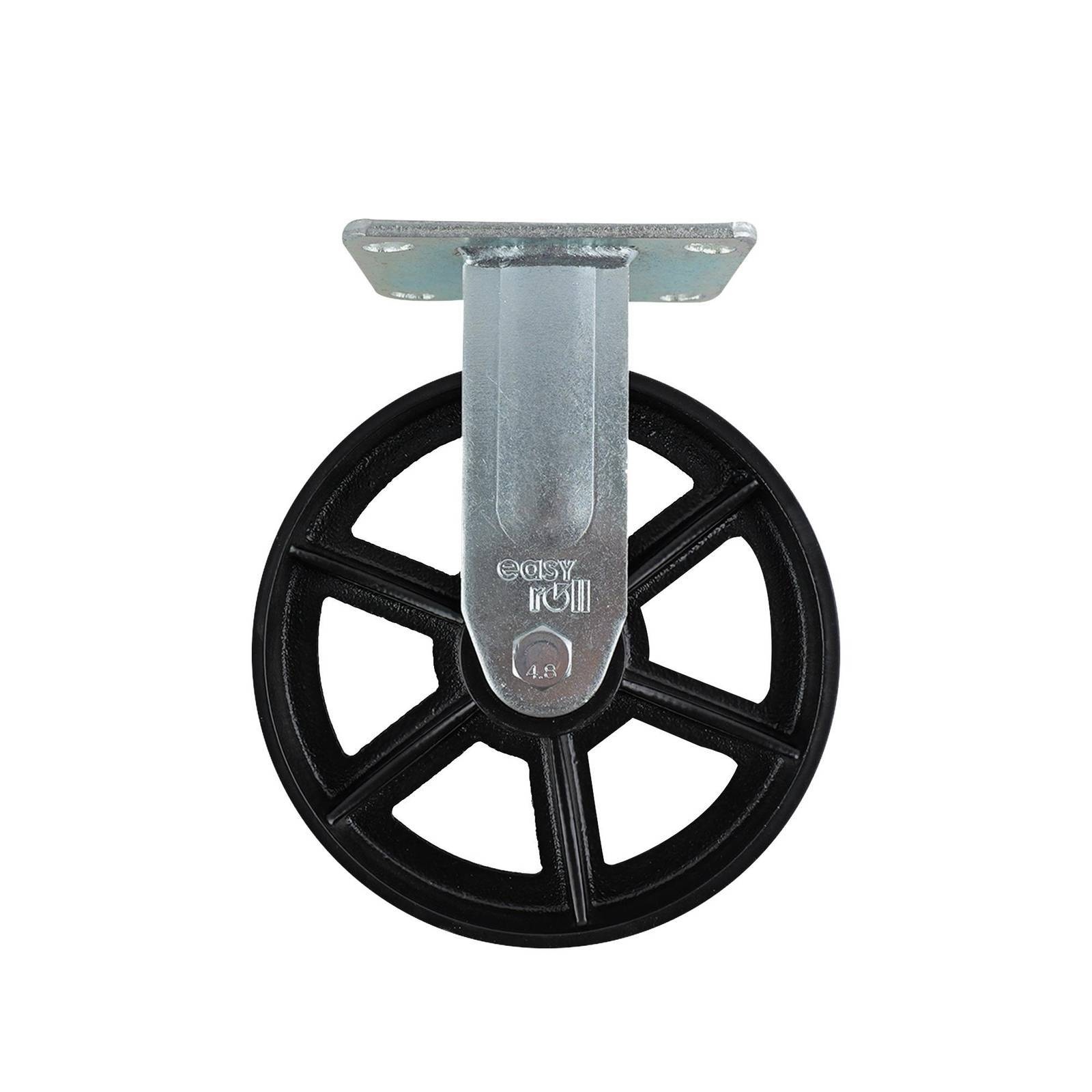 200MM CAST IRON FIXED PLATE CASTOR 600KG