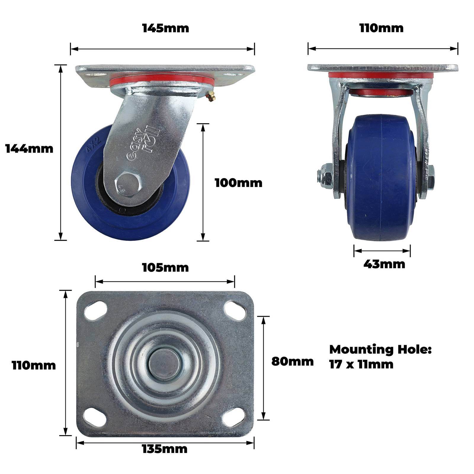 100MM BLUE RUBBER SWIVEL PLATE CASTOR is a robust castor designed for DIY projects requiring reliable mobility support. This swivel castor features a precision bearing set for smooth rotation and a single raceway for stability. Constructed from high-grade steel and carbon steel components, it supports loads up to 200 kgs. Ideal for workshops and custom furniture, it offers both durability and precision for technical applications.Detailed
