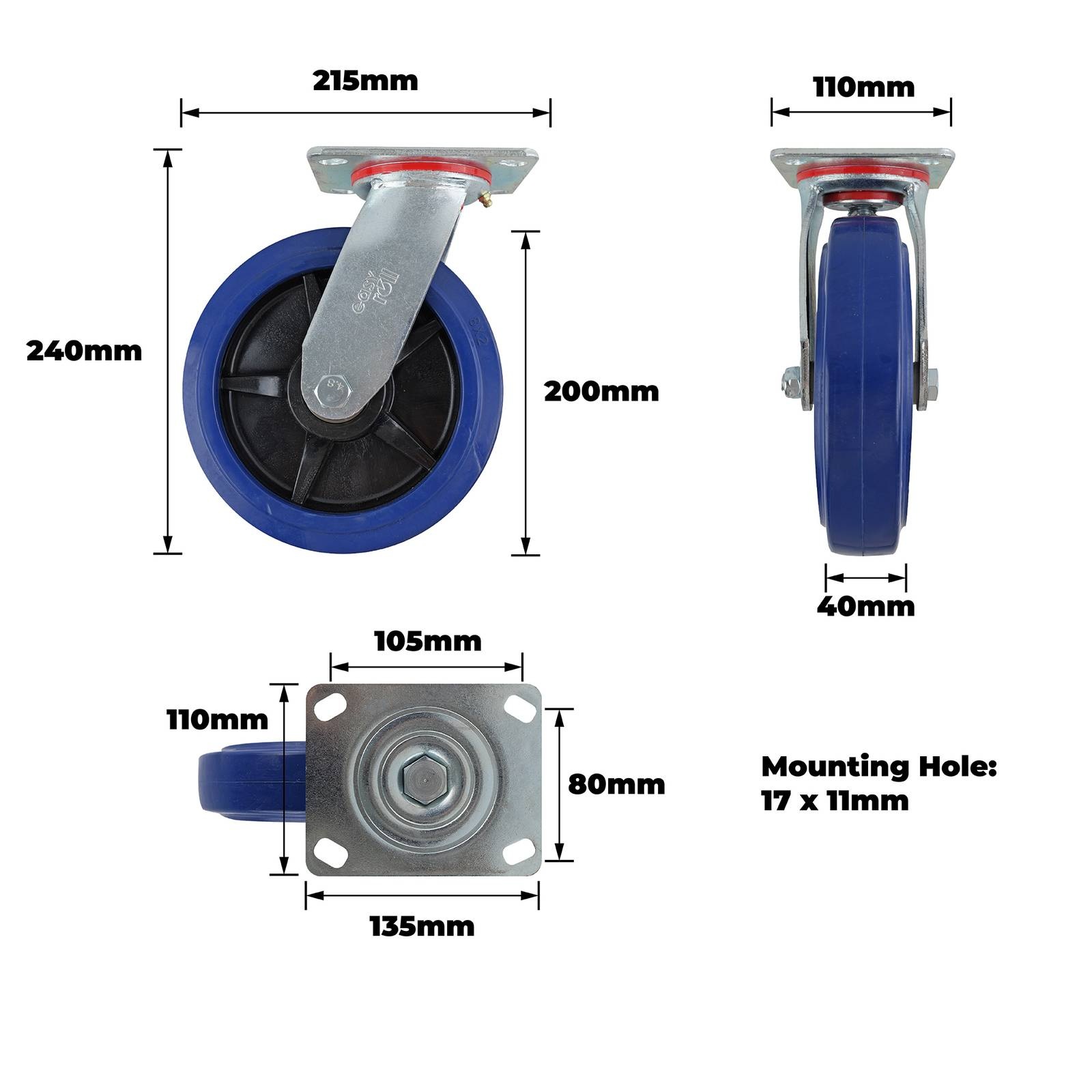 200MM BLUE RUBBER SWIVEL PLATE CASTOR 500KG – This precision-engineered swivel castor is designed for demanding DIY projects where dependable load handling and manoeuvrability are critical. It features a robust construction using steel, carbon steel bearings and polypropylene materials. Its precision bearing and single raceway design ensure smooth rotation and consistent performance. Ideal for both retail and online buyers, this reliable component meets the technical demands of professional DIY applications.Detailed