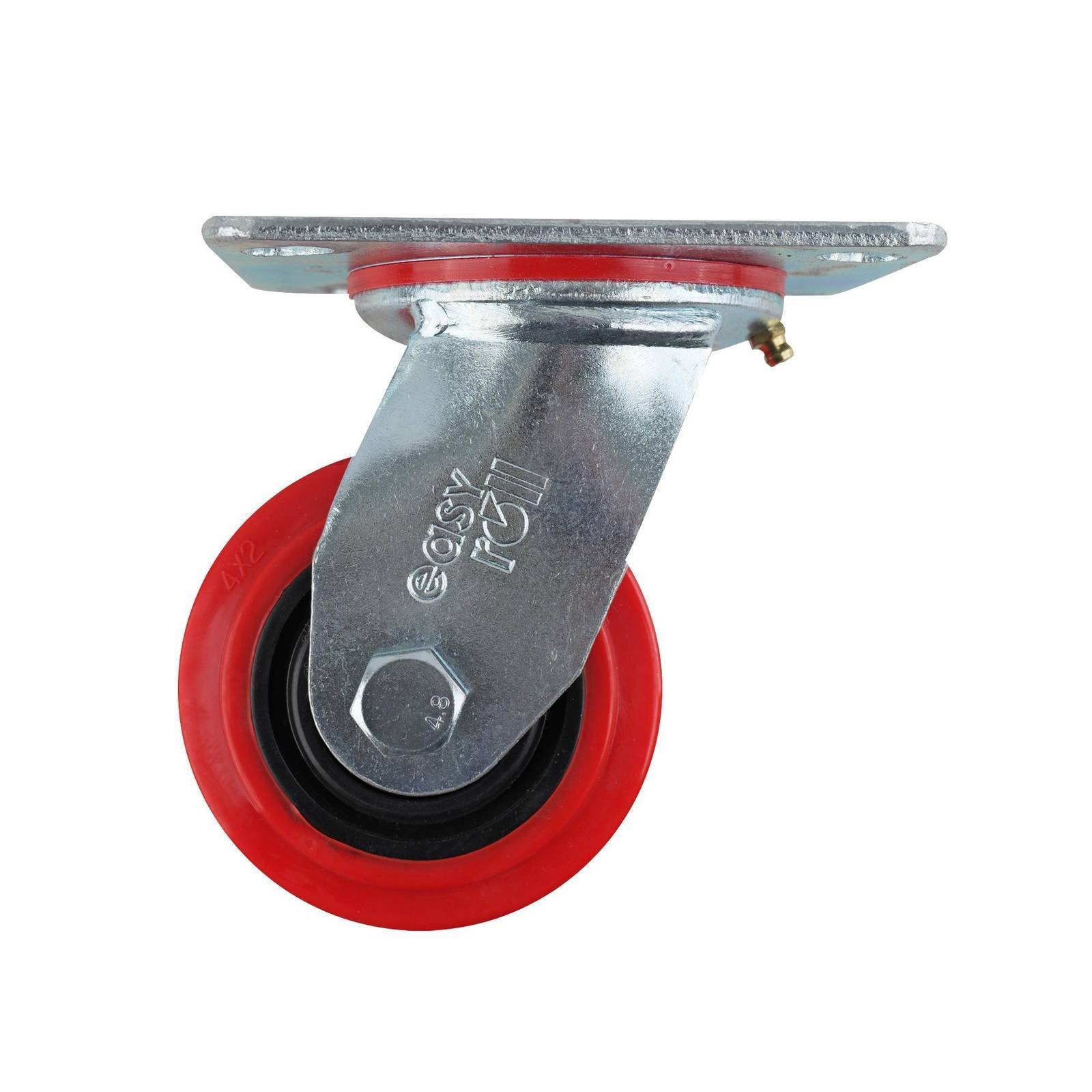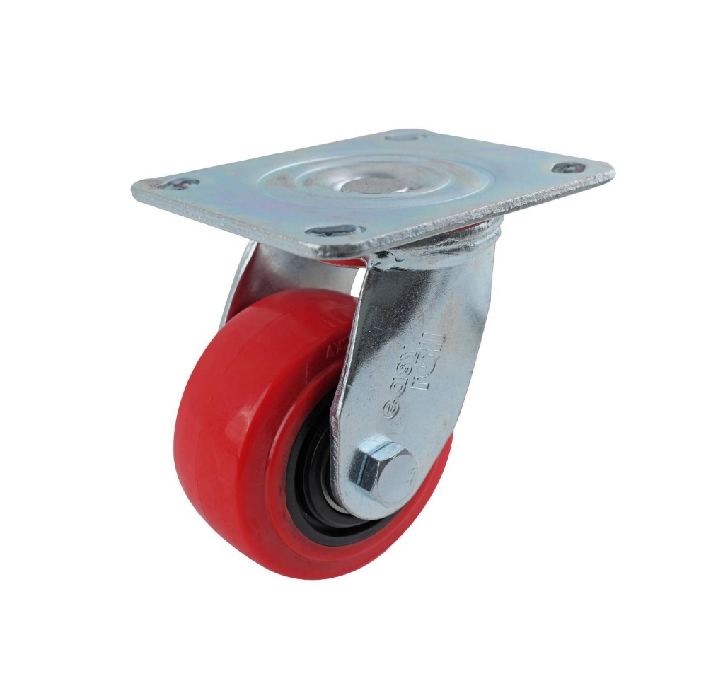 100MM RED URETHANE SWIVEL PLATE CASTOR