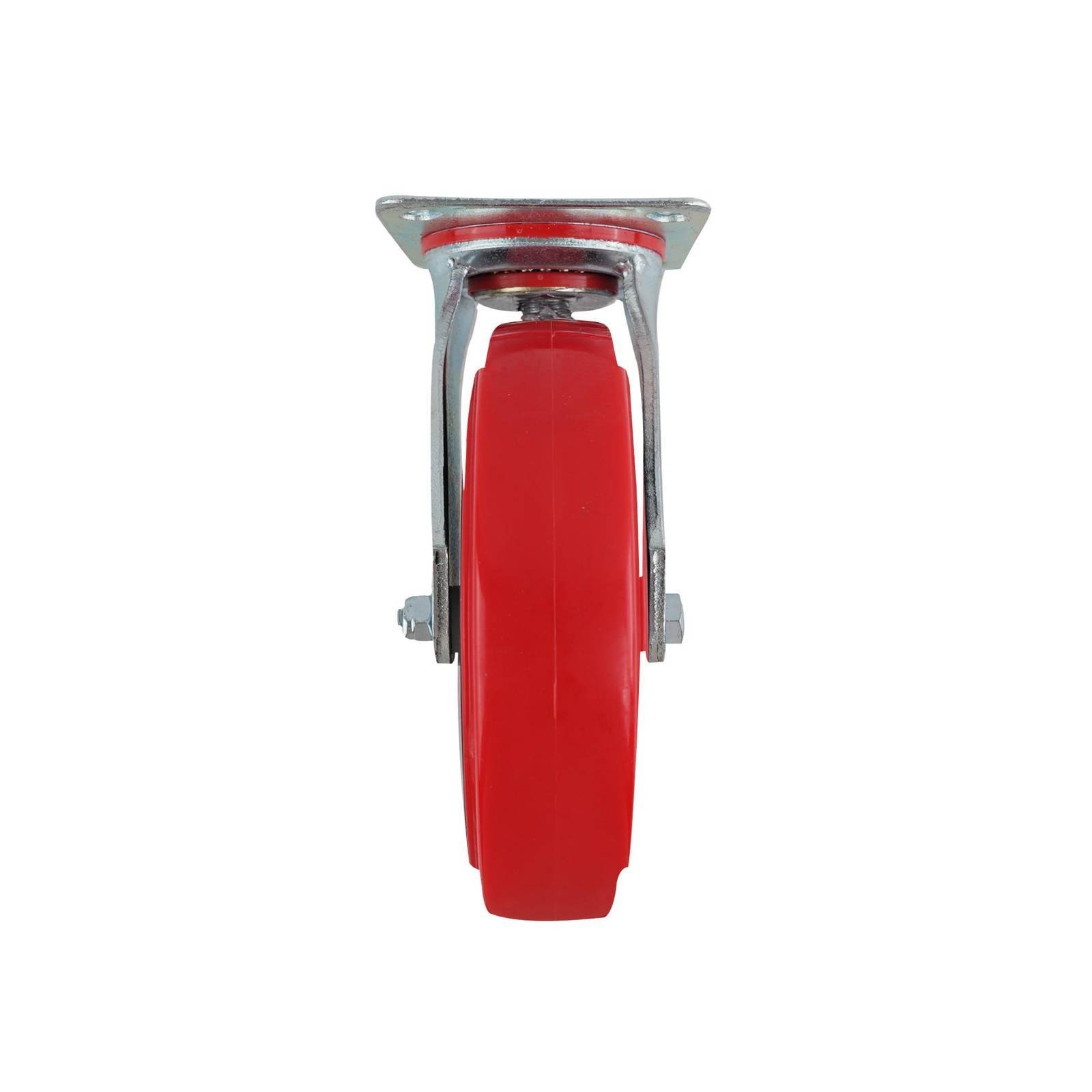 200MM RED URETHANE SWIVEL PLATE CASTOR 400KG: This castor is engineered for rigorous DIY and industrial applications. It features a robust steel housing paired with precision carbon steel bearings that deliver reliable smooth rotation. The durable urethane tyre coupled with a polypropylene wheel core ensures consistent performance even under heavy loads. Ideal for workshops and retail settings, it supports easy manoeuvrability and effective load management during transport and renovation projects.Detailed