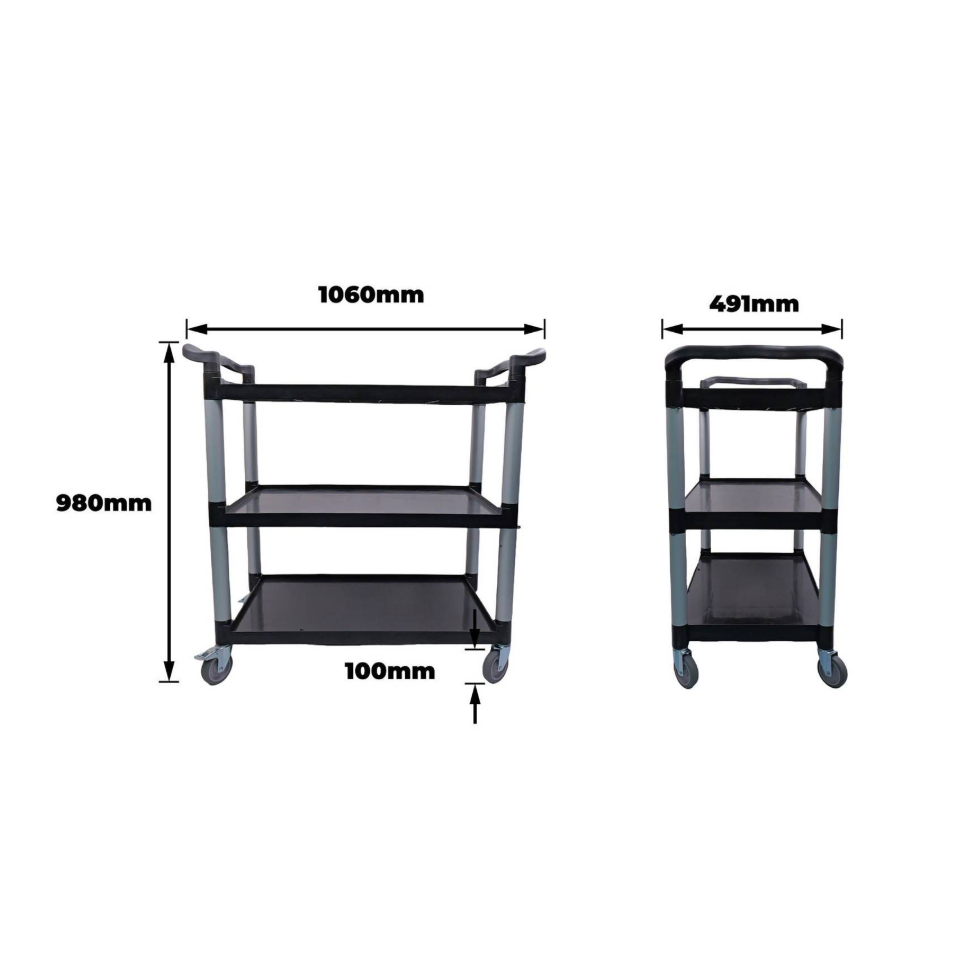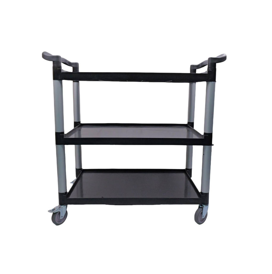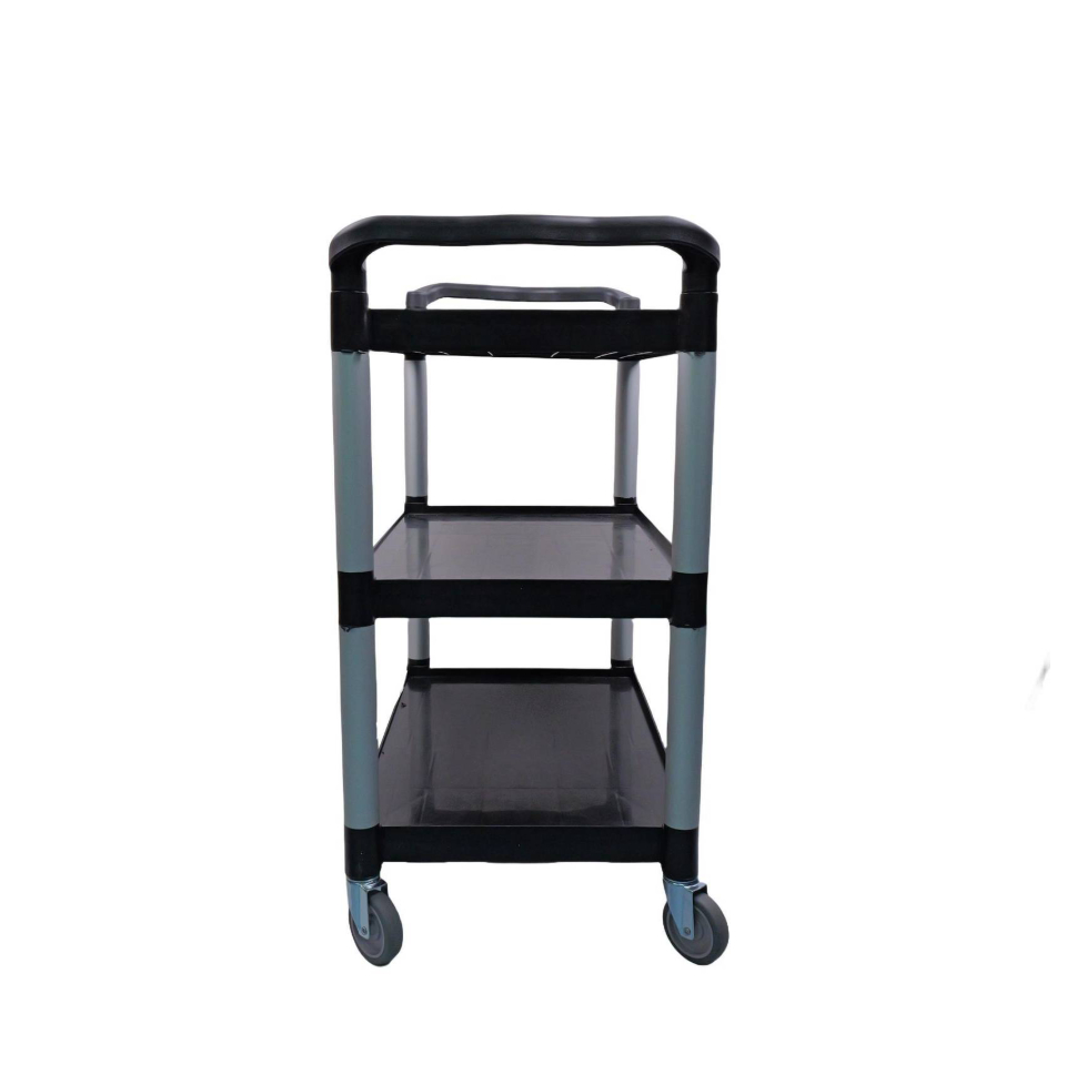 This three tier platform trolley is designed for efficient storage and transport of tools, materials and supplies in workshops or home improvement areas. Engineered to accommodate loads up to 150 kgs, it features robust plastic decks with a lip to simplify spill containment and cleaning. Its non-marking grey rubber castors ensure smooth, quiet mobility, while alloy legs paired with black plastic trays provide a modern, functional appearance that appeals to practical DIY enthusiasts.Detailed