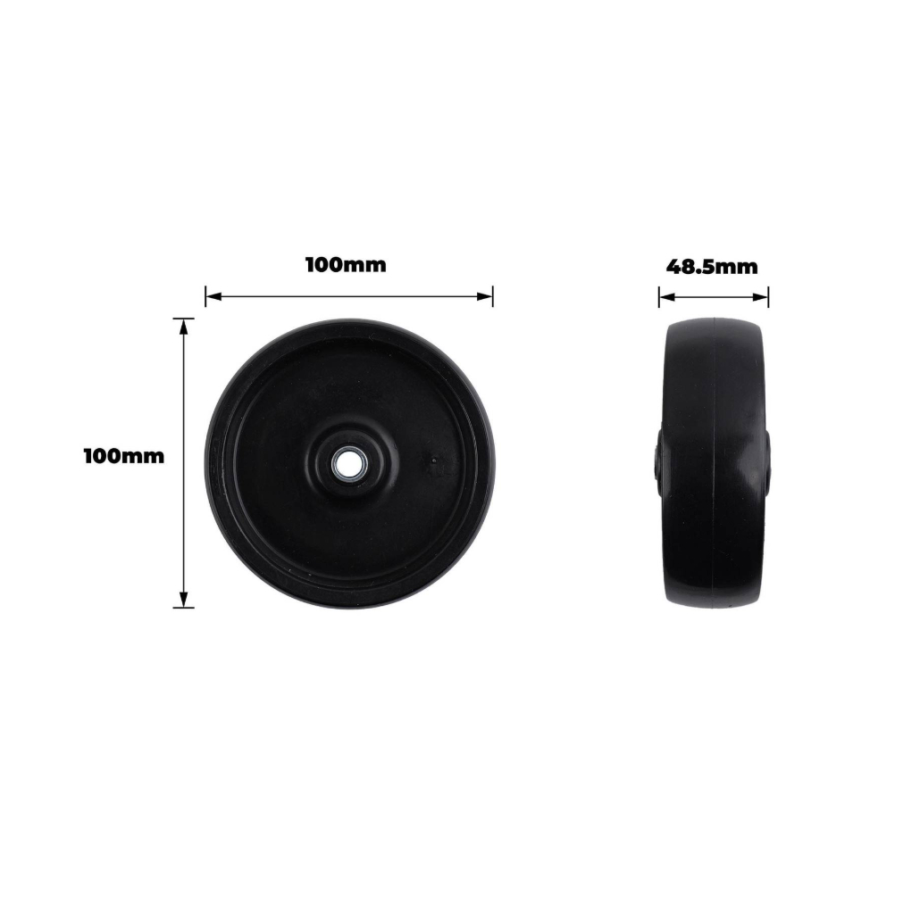 100MM Black Polypropylene Wheel Plain Bore 10 is engineered for use in demanding DIY and professional applications. Built with durable polypropylene and precision bearings, it offers reliable, smooth rotation for tool trolleys, conveyor systems and various machinery. With a robust load capacity of 100 kgs, this wheel combines longevity with straightforward installation, providing a practical solution for technical projects that require dependable performance.Detailed