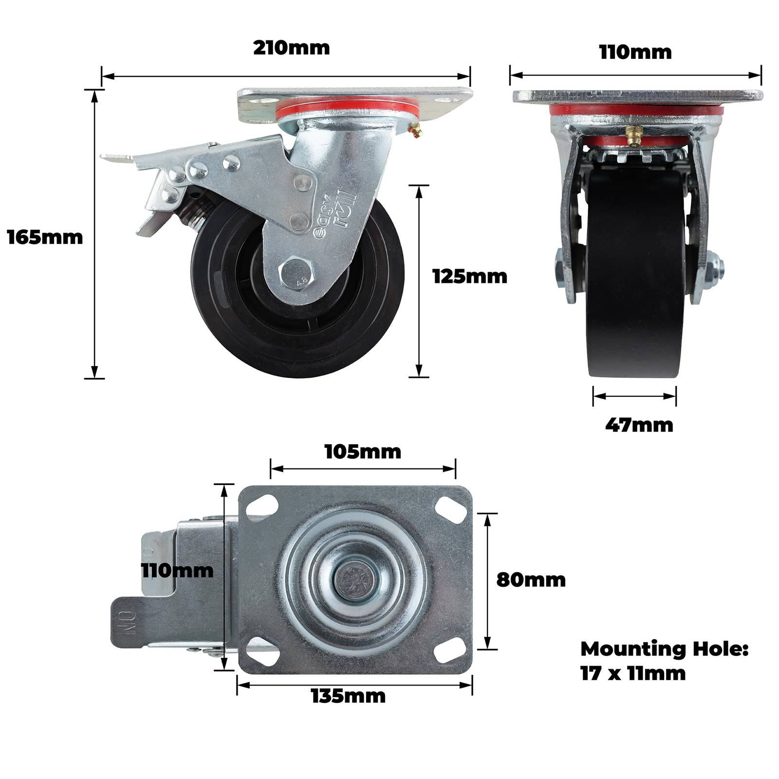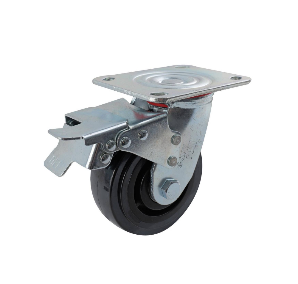 125MM BLACK NYLON SWIVEL PLATE BRAKE CASTOR