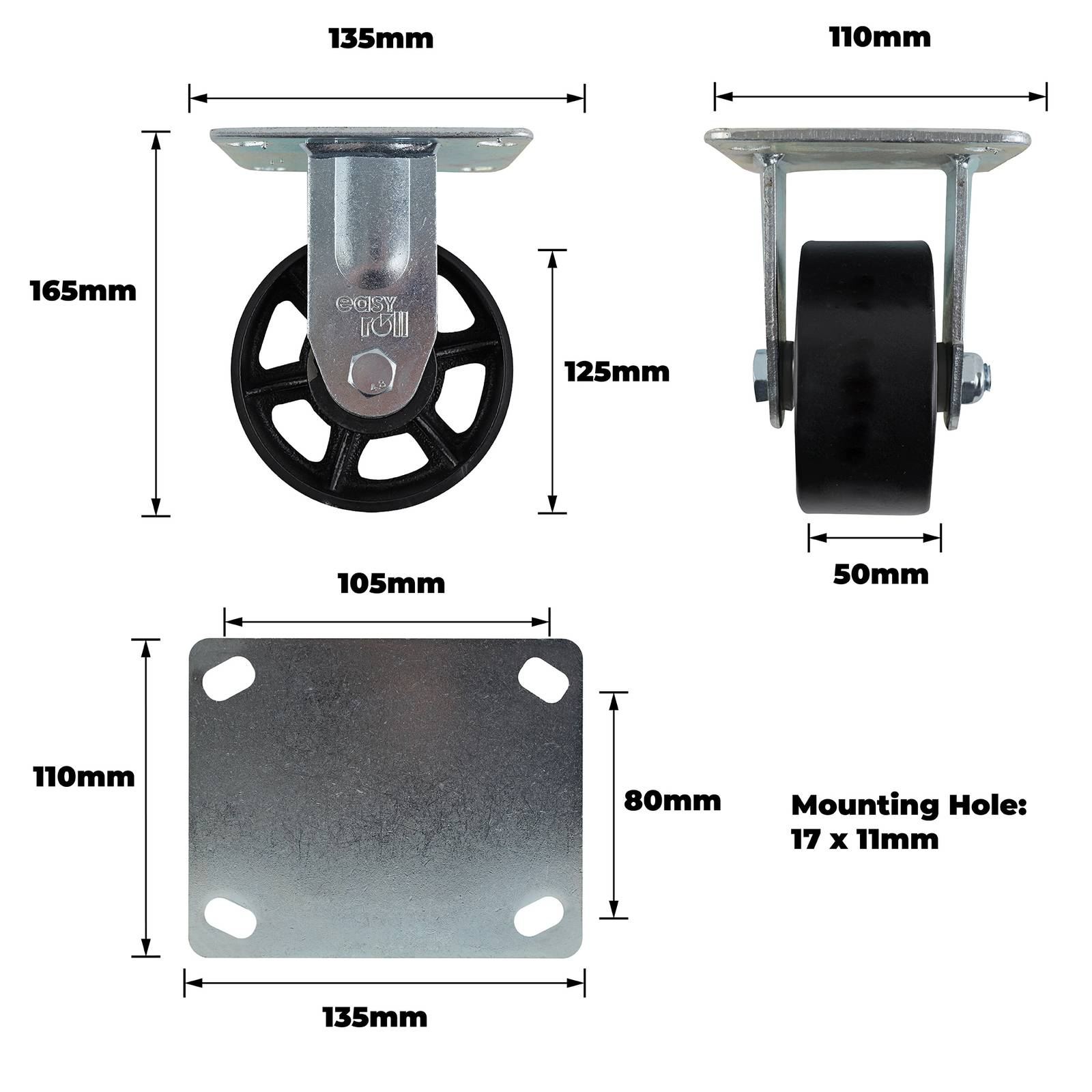 125MM CAST IRON FIXED PLATE CASTOR