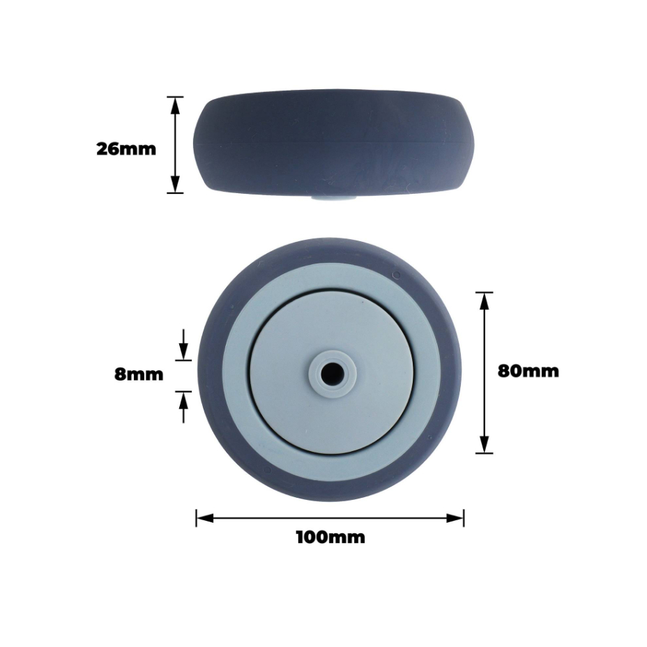 100MM GREY RUBBER WHEEL PRECIS is a precision-engineered wheel designed for DIY projects where reliability and smooth movement are essential. Constructed with high-quality thermoplastic rubber, this wheel features a precision bearing housed in durable bearing steel and a robust polypropylene hub. Rated to support up to 100 kgs, it offers longevity and efficiency for various applications, from custom machinery enhancements to workshop equipment modifications.Detailed