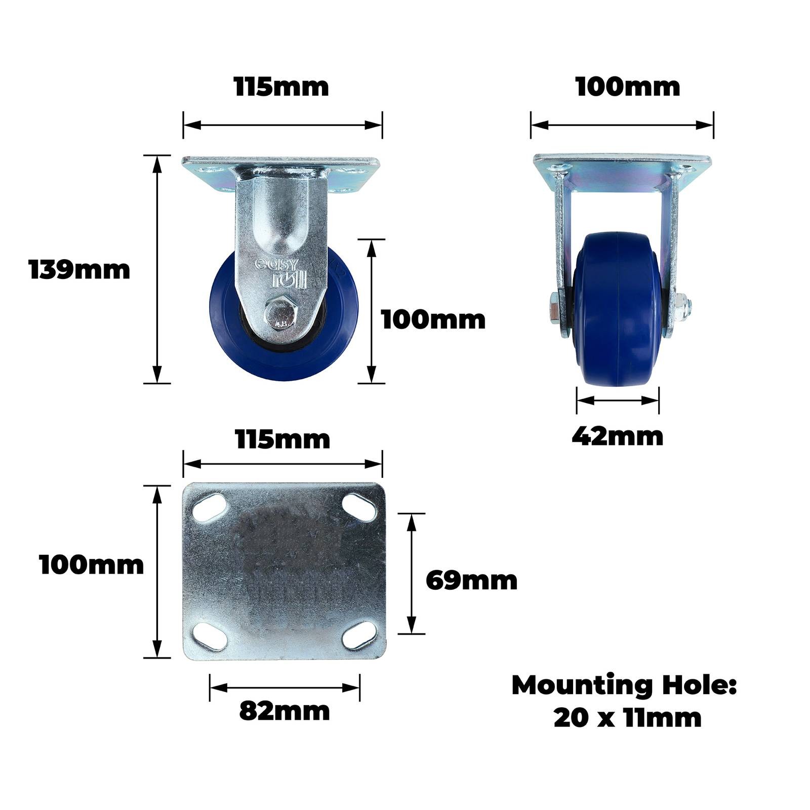 100MM BLUE RUBBER FIXED PLATE CASTOR