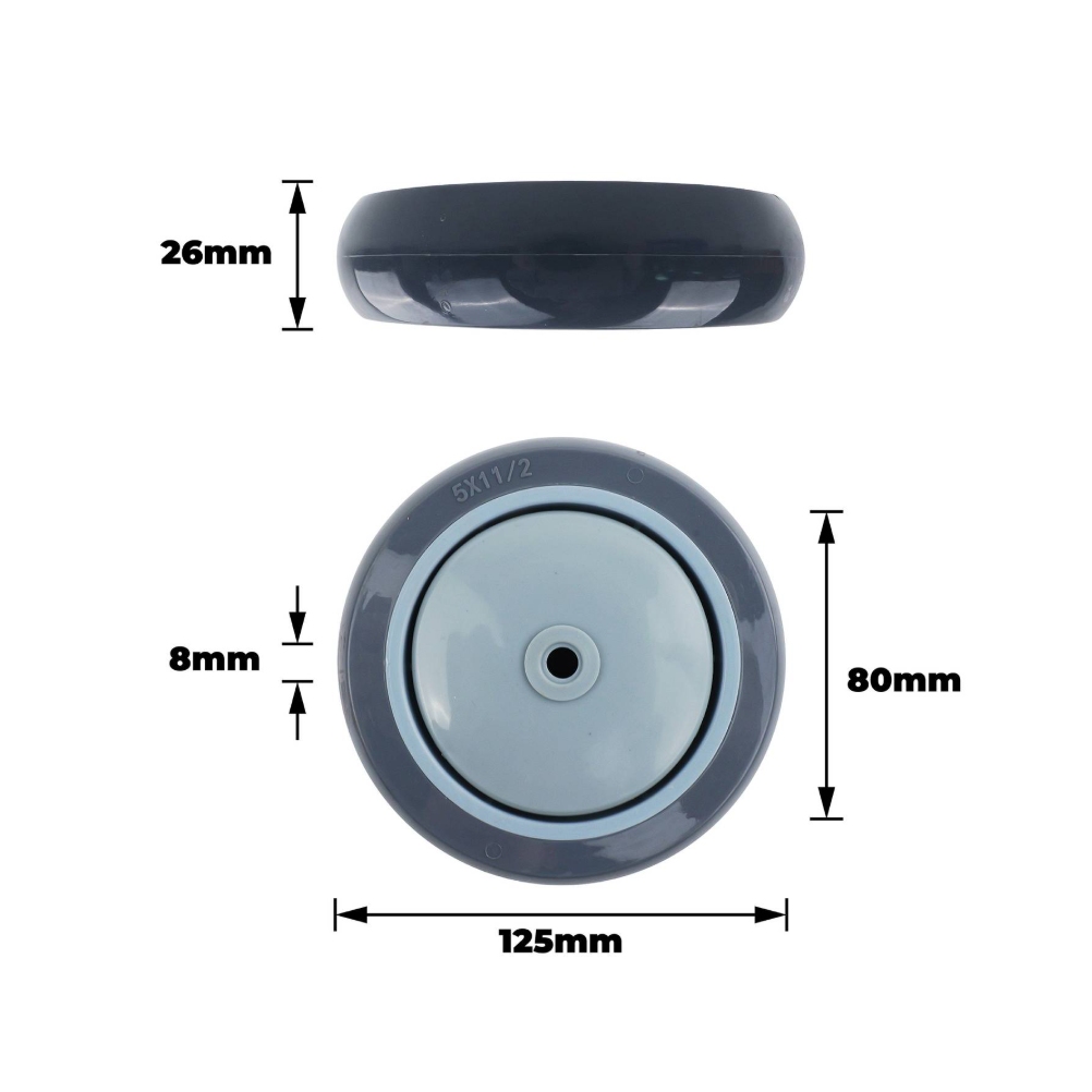- Durable polyurethane wheel optimised for loads up to 100 kgs