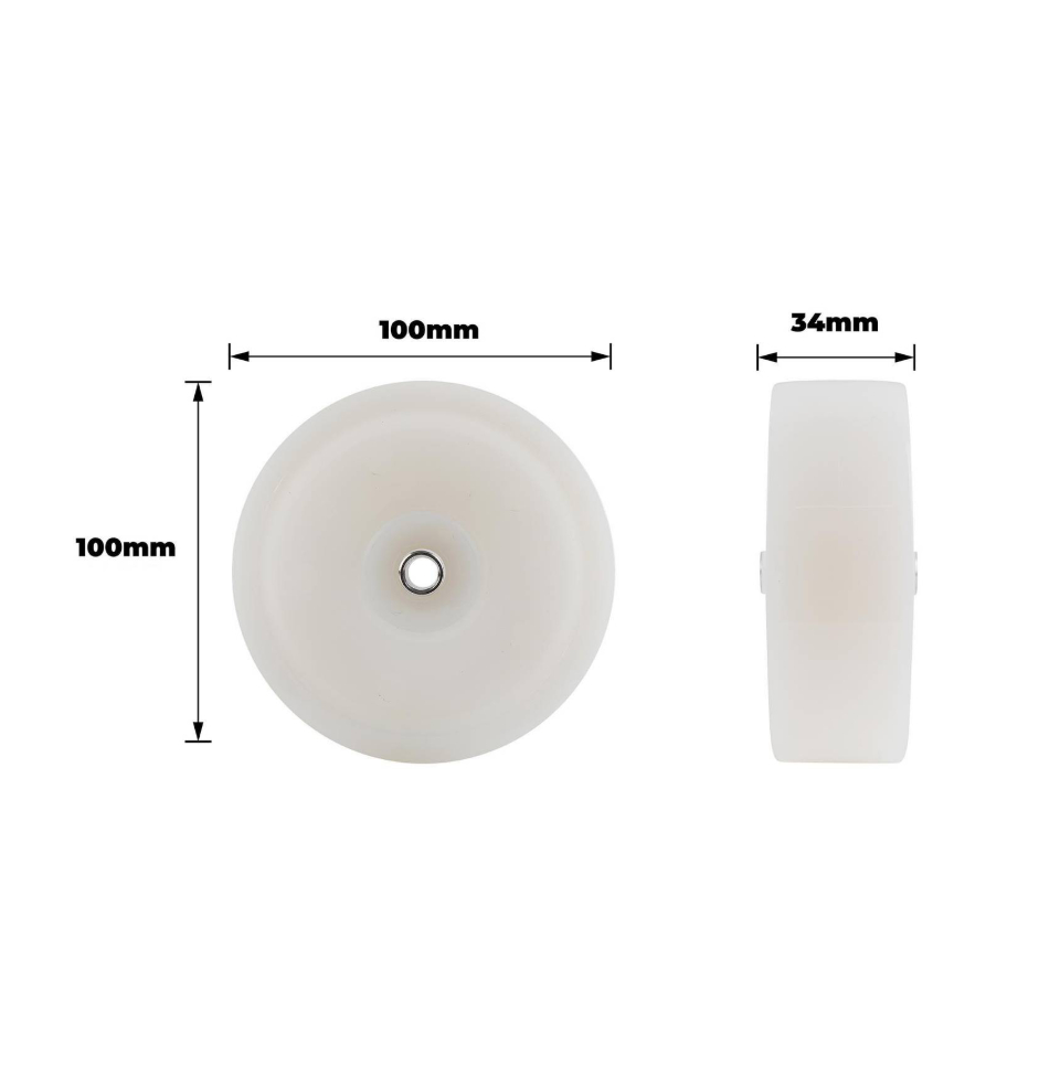 100MM WHITE NYLON STAINLESS STEEL WHEEL PLAIN is designed for the practical demands of DIY enthusiasts. This wheel features a ball bearing system that ensures smooth operation under load. Its nylon construction with stainless steel bearings and polyamide hub is engineered to support up to 100 kgs, making it ideal for various workshop and prototyping applications. The product delivers reliable performance, durability and ease of integration in customised projects.Detailed
