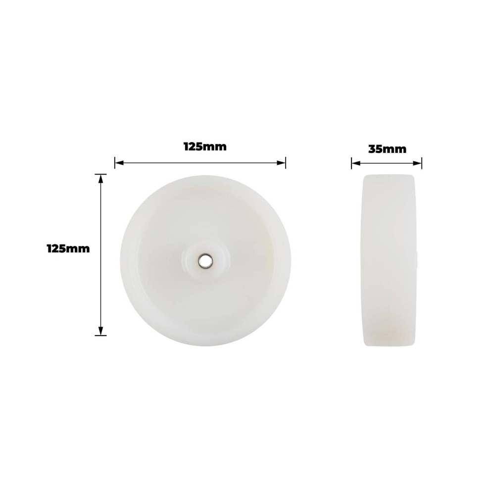 This wheel is specifically designed for DIY enthusiasts who need a reliable and precise component for various projects. Manufactured from durable polyamide, it features a robust ball bearing that guarantees smooth, long-lasting rotation. Its 125mm size and 100‐kg load capacity make it an ideal choice for furniture casters, industrial equipment, and light machinery. The plain design ensures straightforward installation and maintenance.Detailed