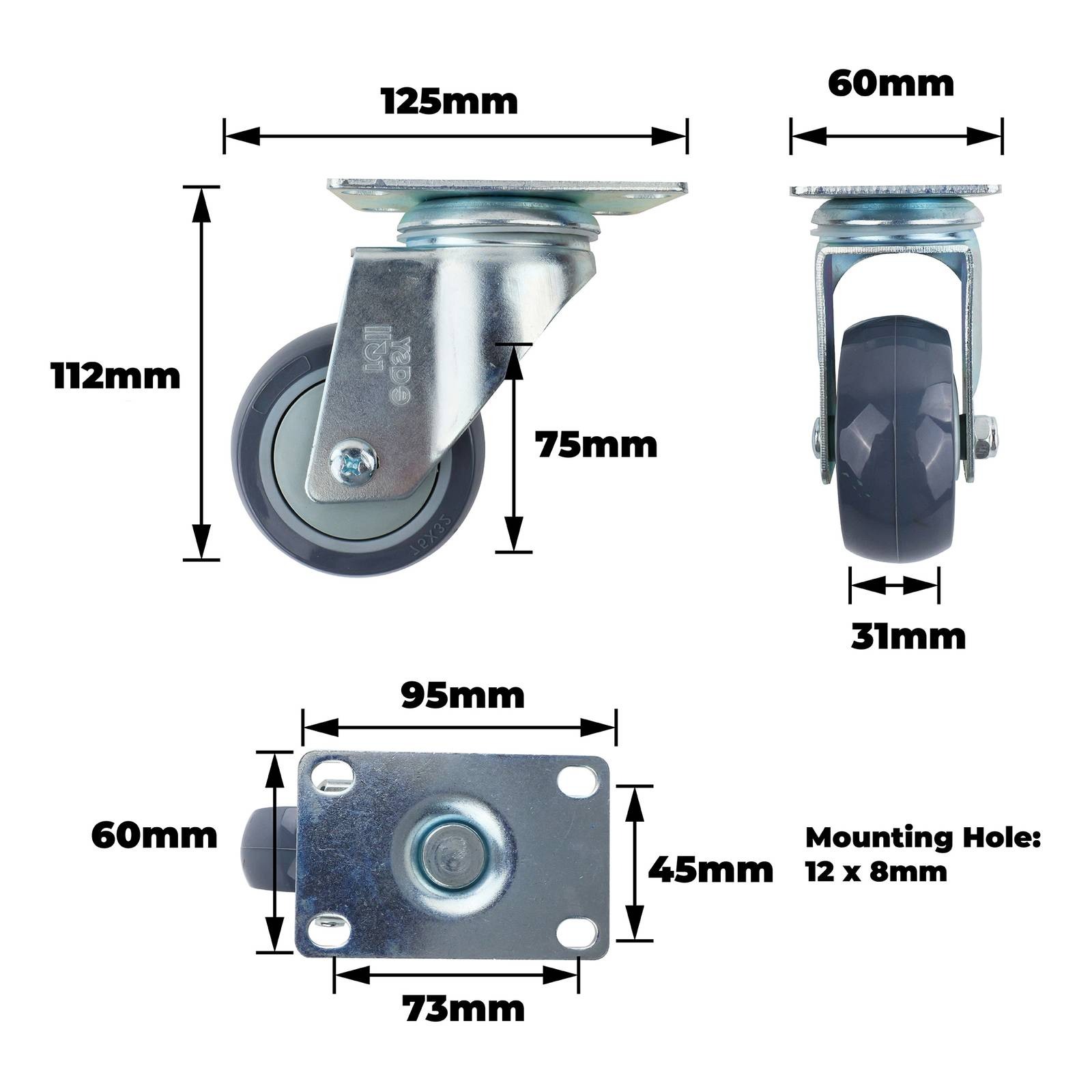 75MM GREY URETHANE SWIVEL PLAT